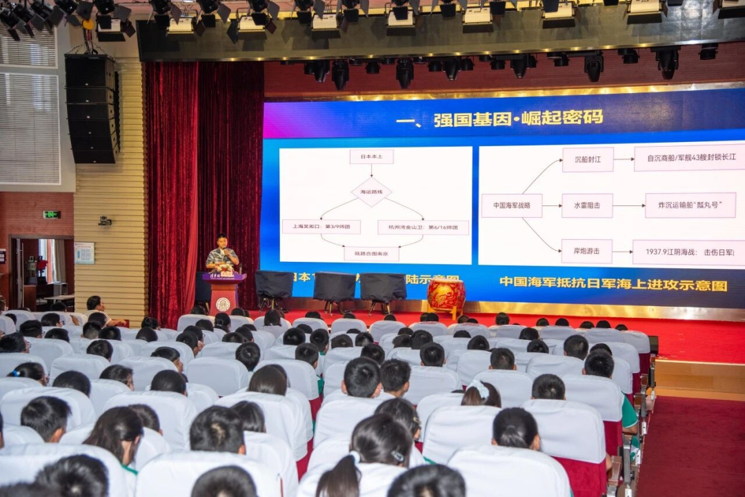 9月11日下午,《海洋强国》讲师团发起人王成印,以“逐梦沧海少年志、砺剑深蓝正当时”为主题,为全体初一同学带来了一场知识与精神的盛宴。他以“从黄水到蓝水,从近岸到深蓝”的壮阔历史为主线,系统地梳理了中国海军的发展历程,带领同学们回顾了海军从屈辱走向辉煌的百年历程。通过详实的历史资料与生动的讲解,同学们深刻感受到海军战士们为守护祖国海疆所付出的努力与牺牲。讲座过程中,同学们全神贯注、认真听讲、积极思考并踊跃发言,展现了对海军发展的好奇与关注,对国家海洋主权的重视。