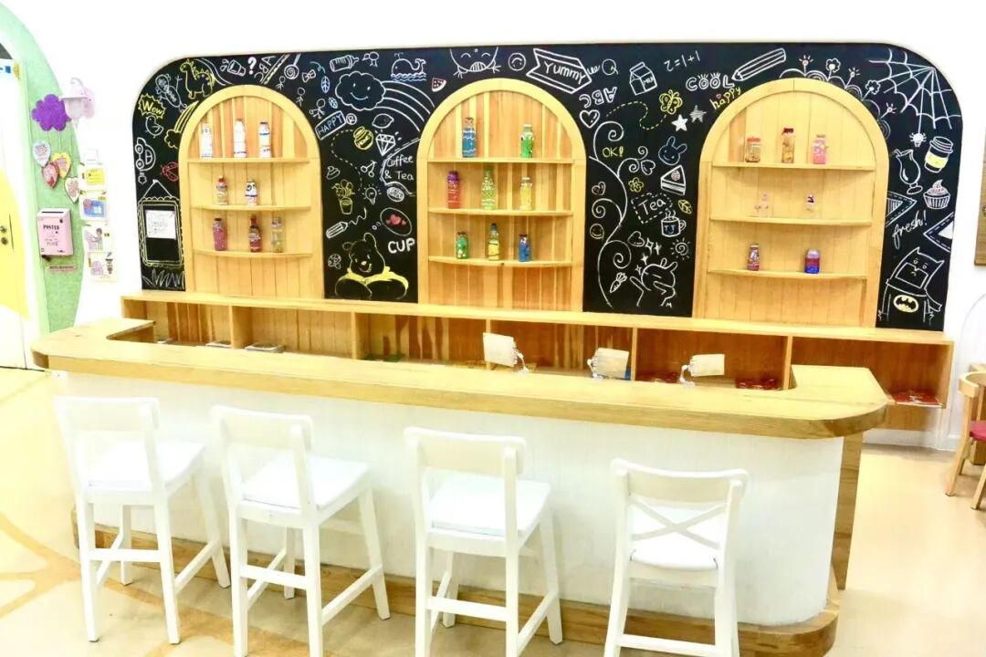 值得一提的是,盥洗室高度及桌椅高度都很适宜托班幼儿身高,所有桌椅、书架边缘均为圆弧形并安装防撞条,墙面也粘贴了软包,防止幼儿磕碰受伤,餐具上,园所选取的是可爱的卡通小熊造型,有助于激发孩子们吃饭的兴趣。