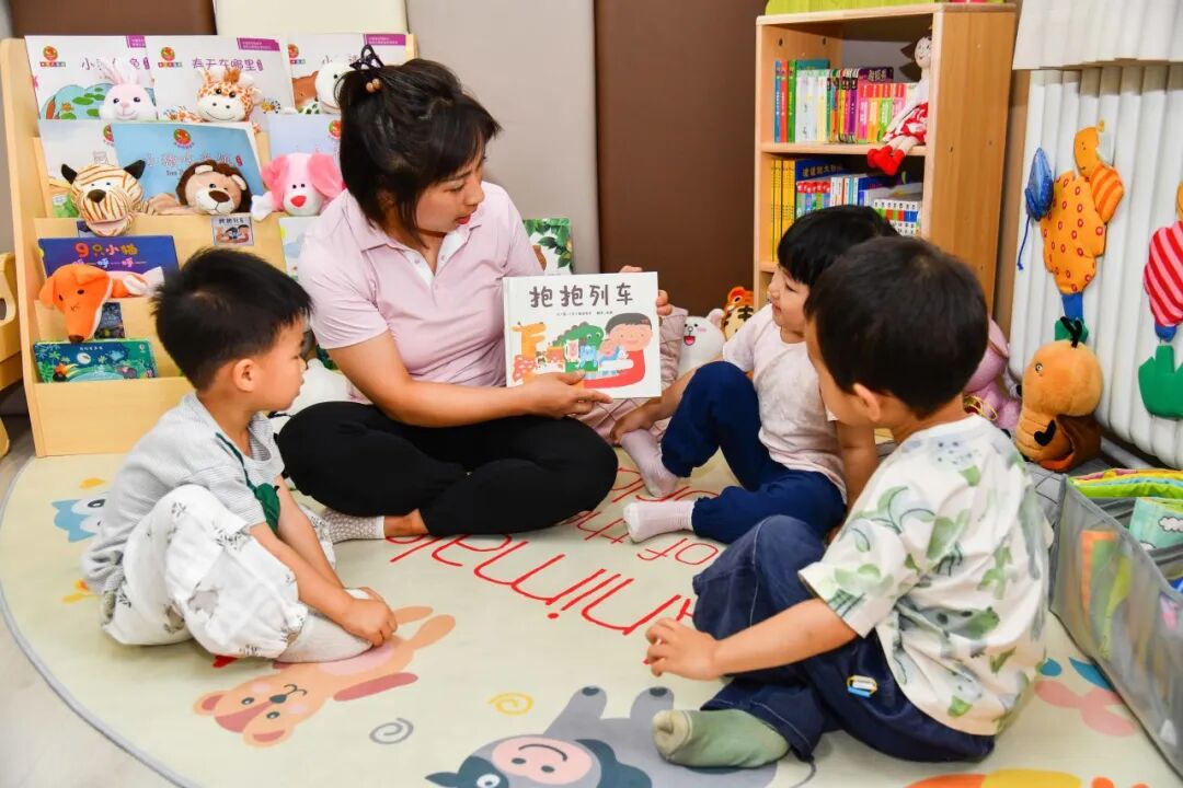 在图书区,老师会陪伴孩子一起阅读、看绘本、讲故事,培养孩子喜欢阅读和认真倾听的习惯。同时师幼之间一起阅读,也可以增进师幼之间的情感交流。