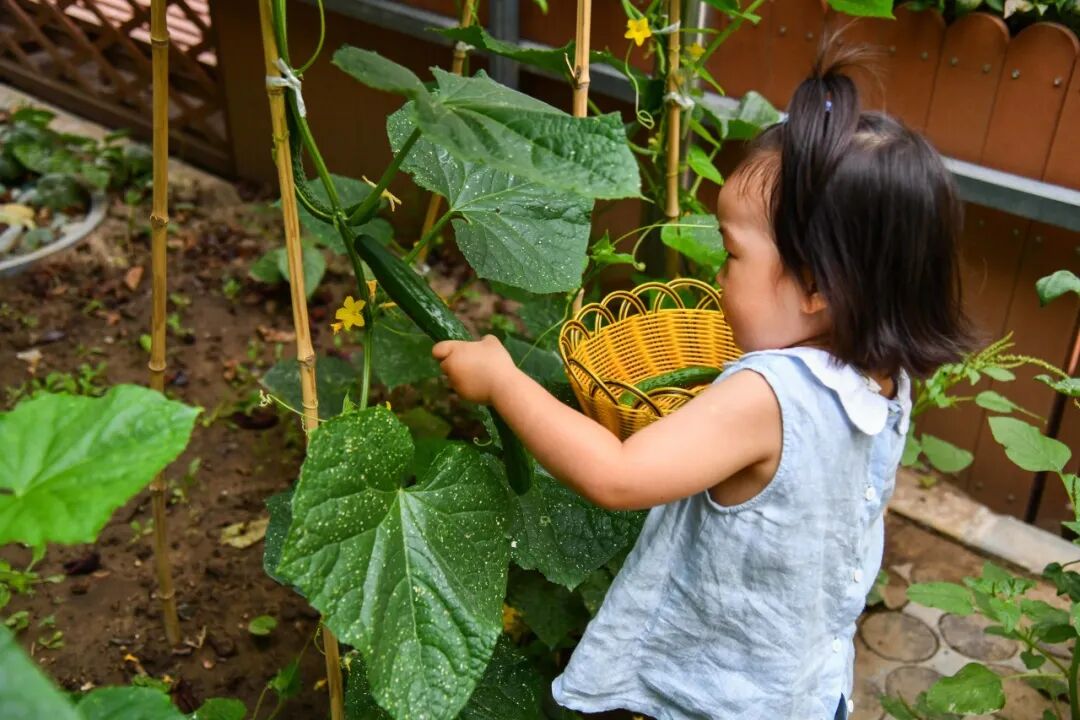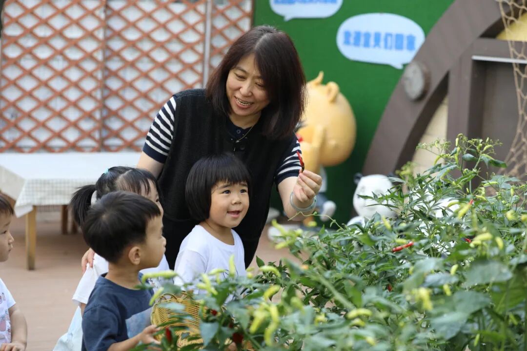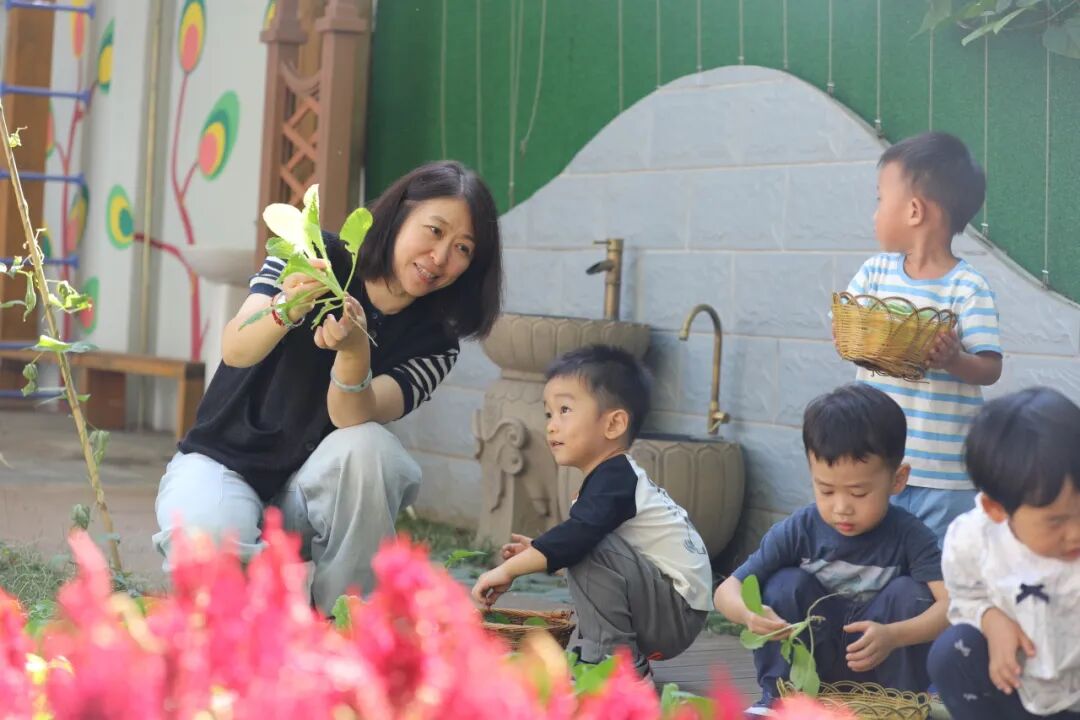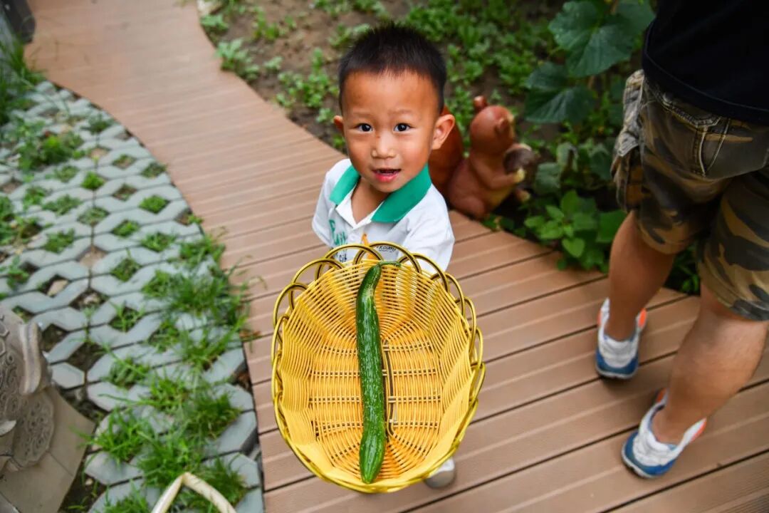 小菜园子的菜熟了以后,我们会带着孩子去摘菜,再拿到娃娃家里切一切、洗一洗、炒一炒,让孩子之间有一个互动,提高他们的社会交往能力。