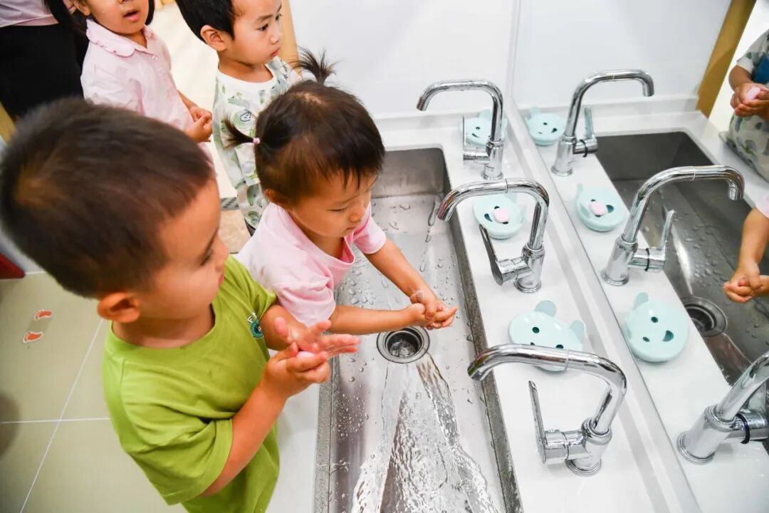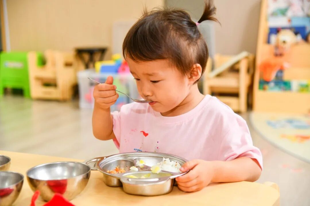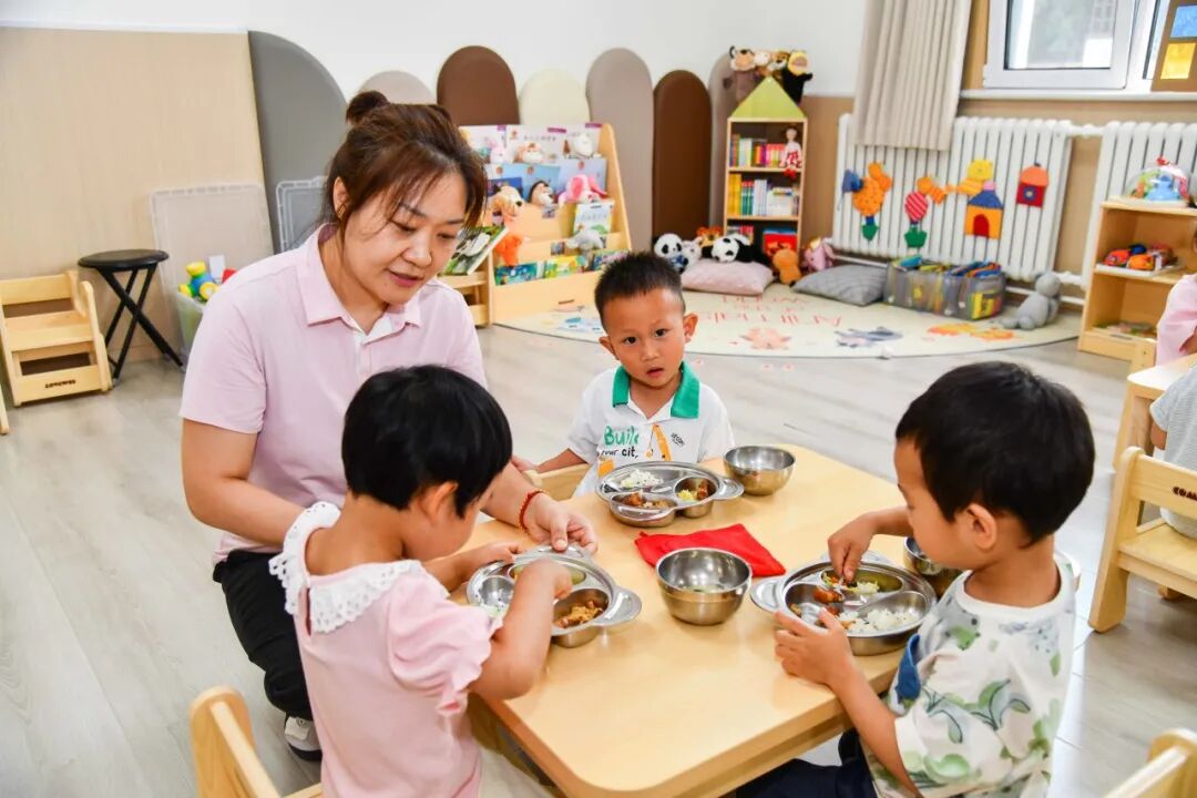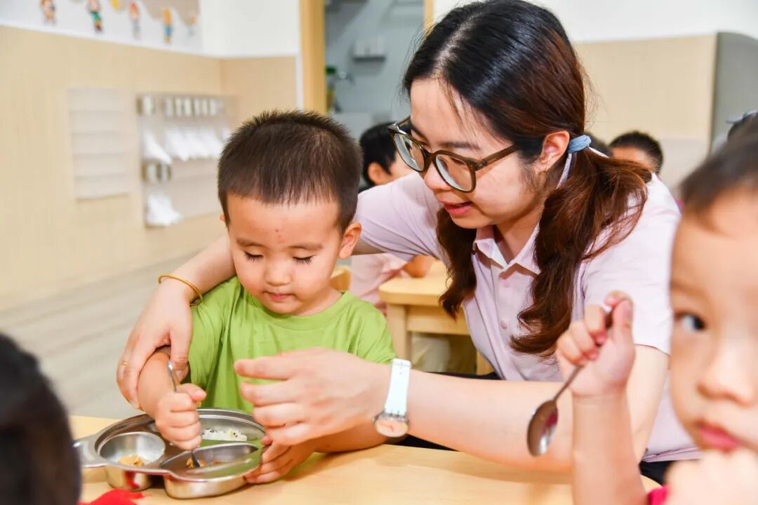 在日常活动和照护中,园所特别注重 “回应性照护”,老师需要“积极回应” 孩子的每个小信号,当孩子哭了、笑了,伸手探索世界时,老师及时拥抱、耐心引导,跟着他的兴趣互动,这些回应能让孩子感受到“我被重视”,慢慢建立起安全感,这种互动不光是哄孩子,更是在帮他打开认知世界的大门,让情感表达、探索欲这些早期发展的关键能力,都在一次次有温度的回应里悄悄发芽,让孩子们在充满爱与关怀的环境中,迈出成长的第一步。叮!午餐时间到!宝贝们伴随音乐有序地走到盥洗室将小手洗干净,随后坐到椅子上等待老师分发香喷喷的饭菜。
