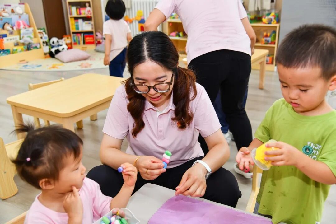 据了解,幼儿园严格筛选具有5年以上早期教育经验且育有子女的教师,采取“2教1保”配置,配备双师型教师2名(教师资格证+托育培训证)、专业保育员1名。团队中1名党员教师,1名入党积极分子,形成“党员先锋岗+积极分子”双核驱动模式,锻造出政治素养过硬、保教业务精湛的先锋育人团队。