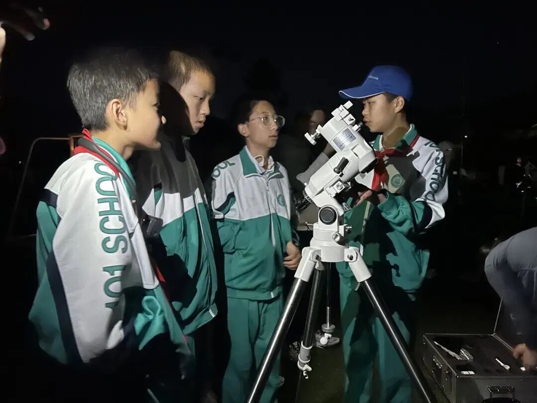 最激动人心的时刻还是用望远镜指向天空的时刻,天文工作室的同学们寻觅到校园最静谧、幽雅的一隅,借助天文望远镜,欣赏着美丽的星空,畅游在深蓝色的天地。