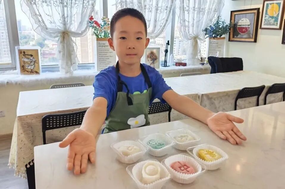 “中国人是讲信用的”“中国人热爱和平”,这些不是空洞的口号,而是像电影里展现的那样,是无数先辈用鲜血和生命换来的信念和尊严。透过影片,我读懂了历史,也看到了很多书本上的经典人物和战役。影片一共143分钟,我看得津津有味、热泪盈眶。妈妈还带我来到了西城区的聚德华天护国寺小吃文化体验馆,参加了一场别开生面的美食研学之旅。在这里,我们亲手揭开冰皮月饼和驴打滚的制作奥秘。当可可口味、紫薯口味、抹茶口味的三色冰皮在手中变得温润,当金黄的豆面均匀地裹住软糯的糯米团,我仿佛触摸到了老北京美食的“灵魂”。这不仅是一次手作体验,更是一次文化探寻,让我们在舌尖的香甜中,读懂了护国寺小吃背后那沉甸甸的非遗故事与护国寺文化的深厚底蕴。