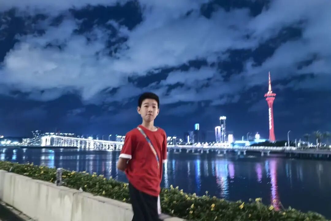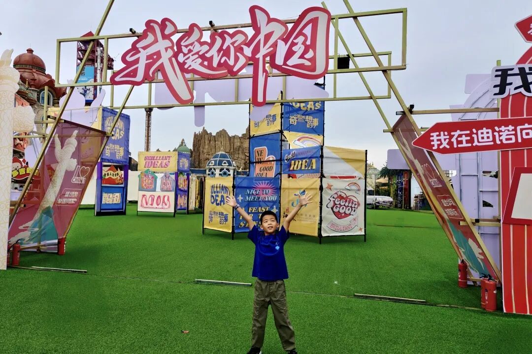 假期里,我们一家人来到常州,感受祖国山河的壮阔。在中华恐龙园里,巨型恐龙模型被披上五星红旗披风,我和霸王龙合影留念并大声喊出:“祖国妈妈,生日快乐!”当傍晚的青果巷亮起红灯笼时,我举着糖画学唱《我和我的祖国》。夜幕降临时,常州大剧院亮起“我爱你中国”灯光秀,我挥舞荧光棒跟着人群合唱。
