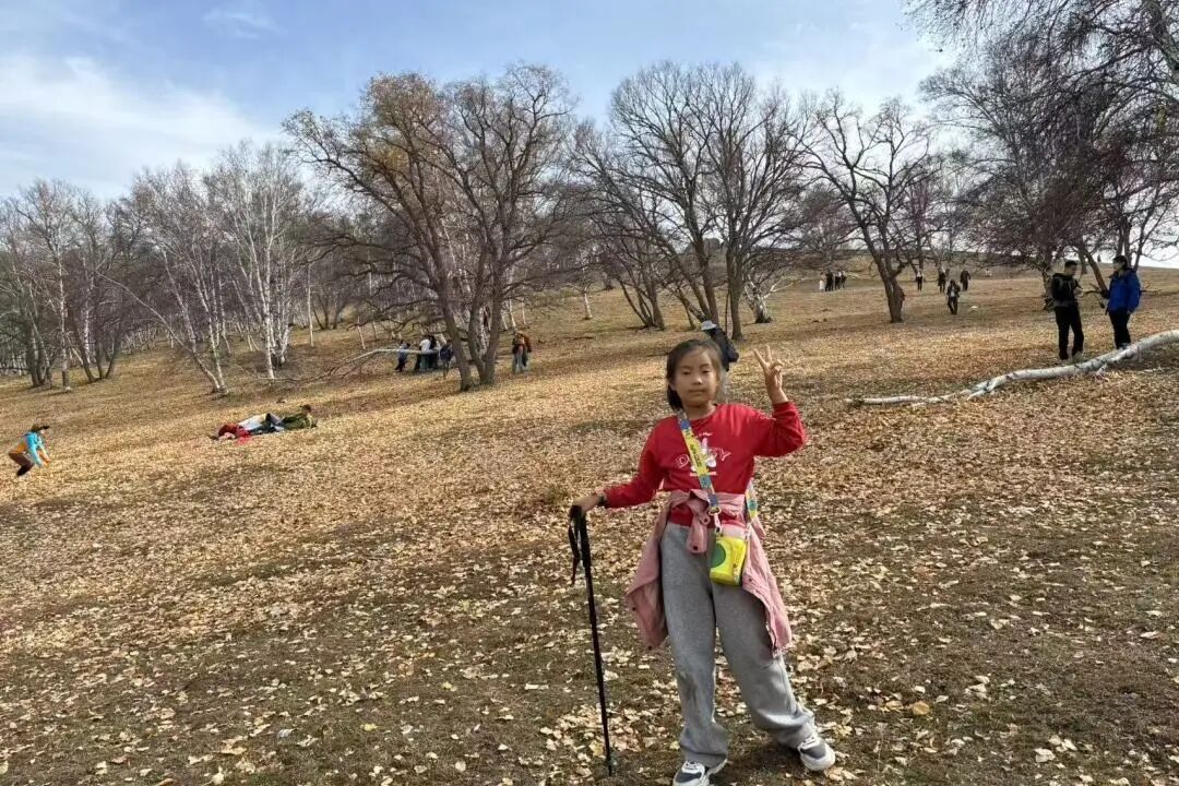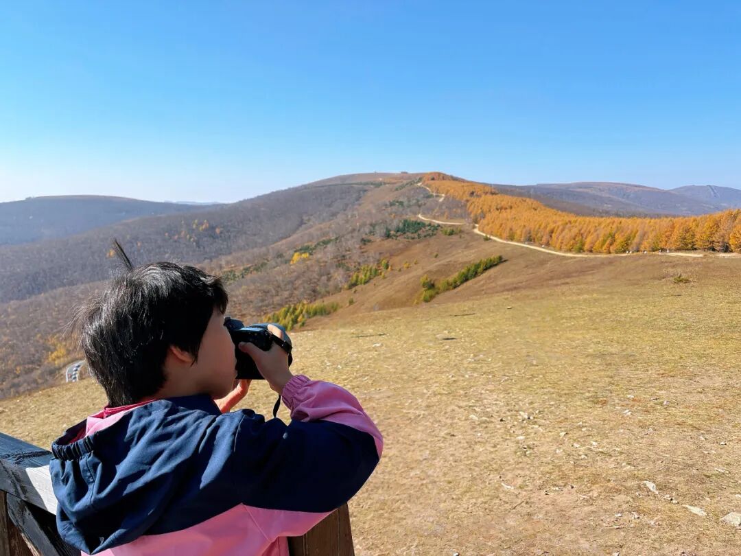 这个国庆假期,我们一家人一起感受了东蒙草原的秋天。国庆日出发前,我们在密云太师屯镇金崇山烈士纪念碑处致敬先烈,爸爸对我说:“英雄从未远去,他们的精神永远照亮我们前进的方向。”沿着克承高速、热阿线、达达线,我们一路前行,路边的风景逐渐有了深秋的模样。在途经大型风车阵的路上,我们看到了在水塘里悠闲踱步的牦牛;在大兴安岭内蒙古最高峰黄岗梁上,我们欣赏了壮观的落叶松林;当车队飞驰在99号公路上,我们为双峰驼和远处火山口驻足。这个假期,我见识了广袤的东蒙草原,真实感受了草原上的秋天真美。