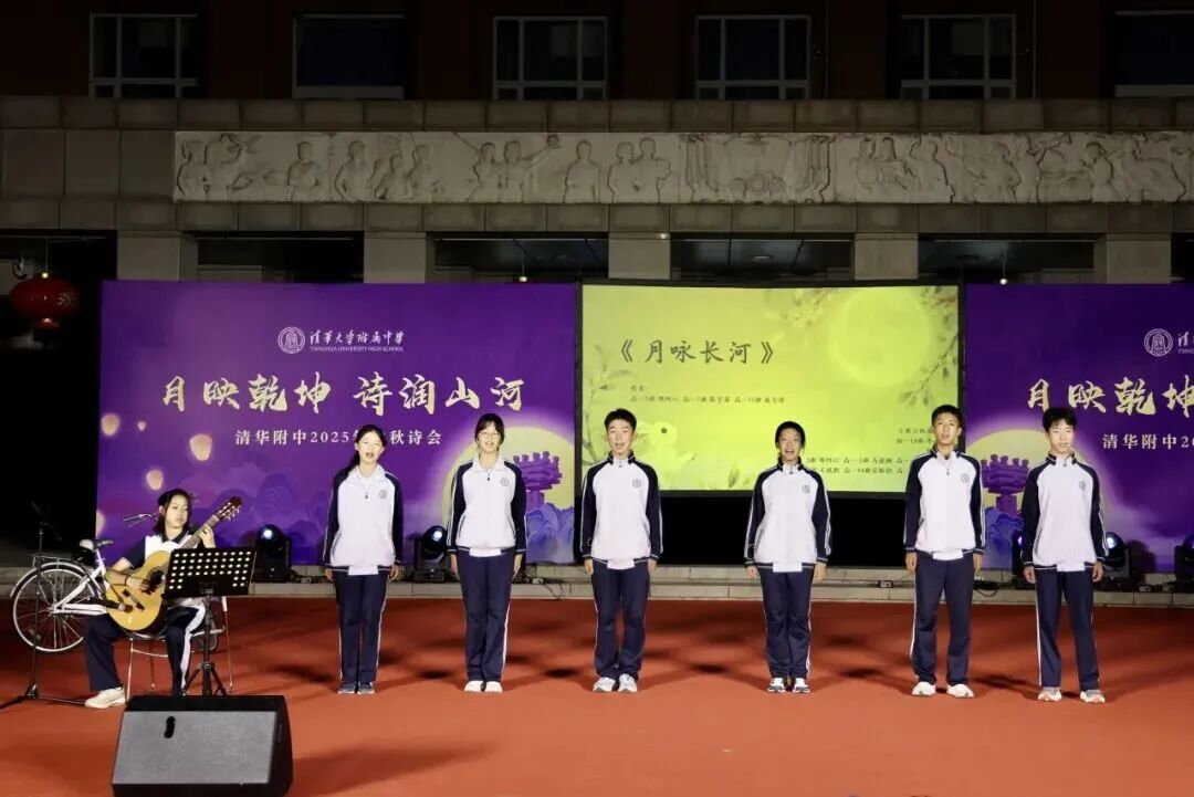 同学们以中秋明月为引,将课堂上对 “时光”“青春” 的思考,凝练成每一行诗句。当朗诵者的声线响起,时而轻柔如月光拂水,时而激昂似江河奔涌,再配上古典吉他的琴弦轻颤,乐音如流水般缠绕着诗行,仿佛一条流淌的 “诗河”,载着听众的思绪穿梭于岁月之间,在仲秋夜里谱写出独属于青春的诗意篇章。