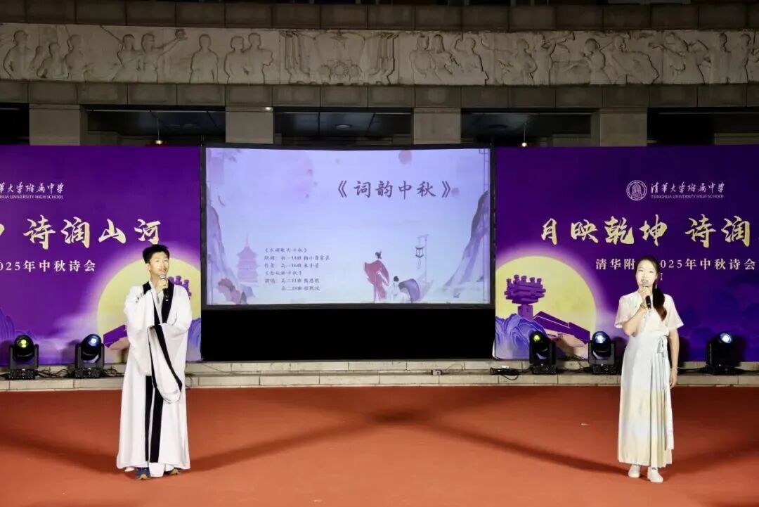 在“月映乾坤,诗润山河”中秋诗会上,师生们共同打造了一场文化盛宴。同学们带来了源自语文课的原创作品,将课堂所学转化为舞台上的精彩呈现——