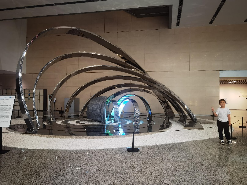 在国庆这一天,我参观了中国科学家博物馆,感受了中国科学家的伟大。走进博物馆,首先映入眼帘的是“国传之星”。它的中央是一块形状不规则的石头,仿佛被一股神奇的力量牵引,层层舒展,绽放出独特的美感。在“抗日战争中的中国科学家”展厅中,那些精美而珍贵的手稿令我印象深刻。在战火纷飞、条件艰苦的年代,科学家们依然坚守科研岗位,这份执着与奉献令人肃然起敬。