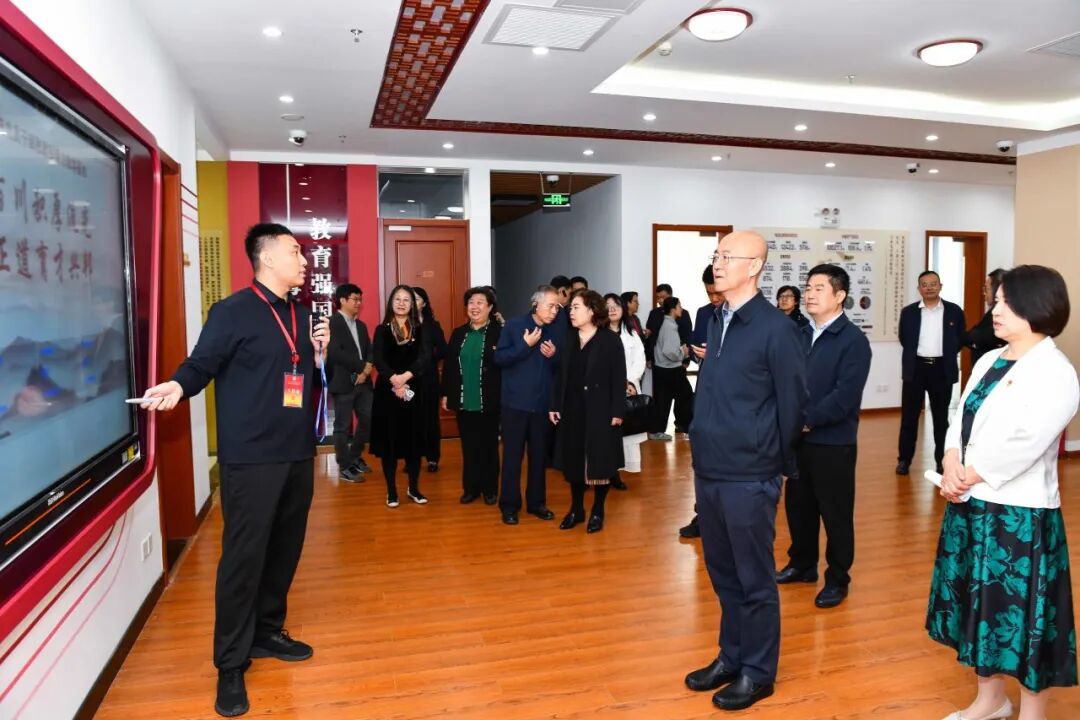揭牌仪式后,与会领导及嘉宾在基地主创团队负责人、海淀区教育党校副校长尹捷的引导讲解下集体参观了教学基地,并通过短片回顾了思政引领力教学基地的建设历程和内容意义。大家对基地的育人理念与丰富的实践功能给予了高度评价,并对其在未来的实践应用与价值发挥寄予厚望。