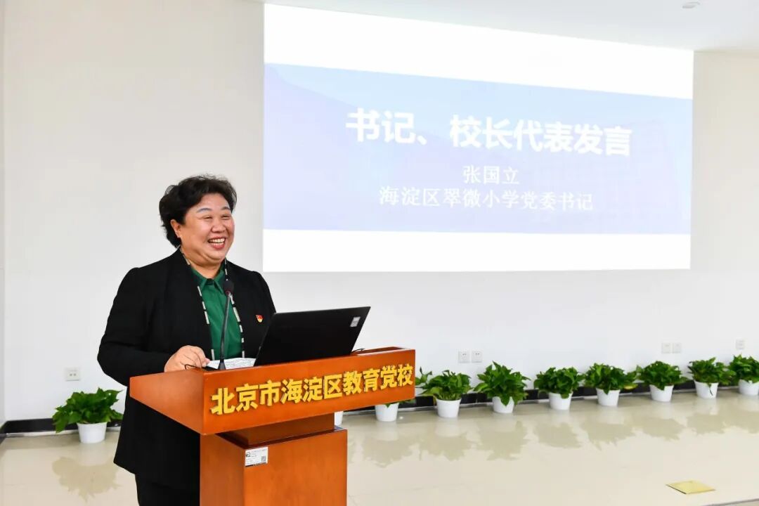 海淀区翠微小学党委书记张国立作为书记、校长代表发言,她回顾了从中青班学员到集团校掌舵人的成长历程。她勉励新学员把握学习“黄金期”,走好能力“进阶路”,将培训所学切实转化为推动学校发展与区域教育改革的实践能力。