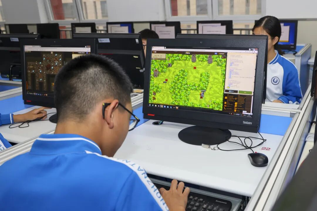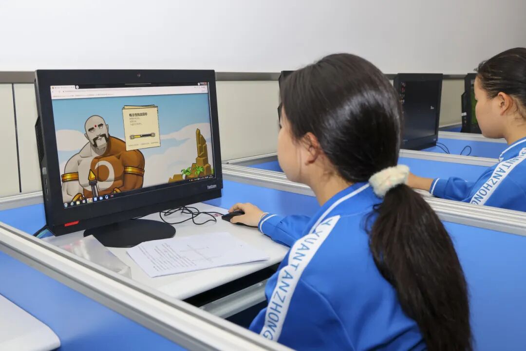 渊博编程课上,教师引导学生用创意与代码融合,在代码逻辑中融入文学创作与美术设计,实现技术思维与人文素养的协同发展。