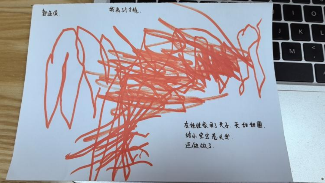 《幼儿园保育教育质量评估指南》第28条中指出,“要重视幼儿通过绘画、讲述等方式对自己经历过的游戏、阅读图画书、观察等活动进行表达表征,教师能一对一倾听并真实记录幼儿的想法和体验。”如果说游戏观察为我们打开了了解儿童的一扇窗户,那么一对一倾听就是为我们打开的另外一扇神奇的窗户。透过这扇窗,我们可以更好地发现儿童的“一百种语言”,更全面、准确、深刻地理解儿童的意义世界。