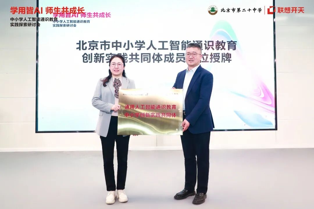 在揭牌环节,与会领导共同为“人工智能创新实践教室”揭牌,标志着AI教育实践平台的正式启用。随后,“北京市中小学人工智能通识教育创新实践共同体成员单位”授牌仪式也圆满落幕,进一步推动了各单位在AI教育领域的深度合作与共同发展。