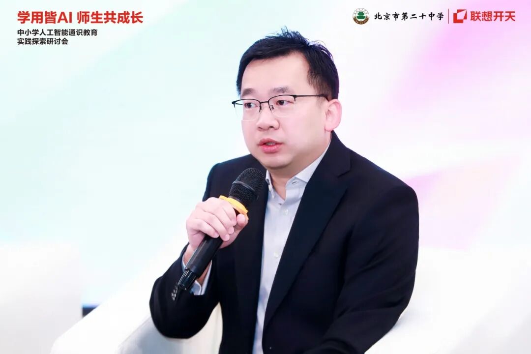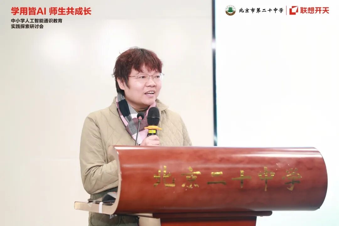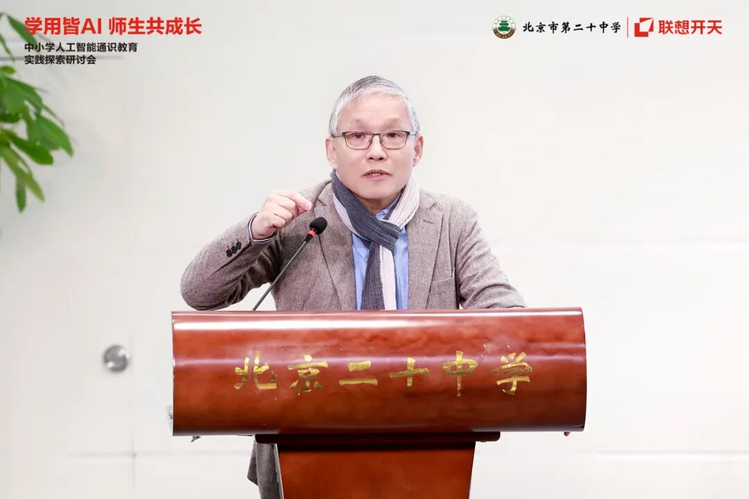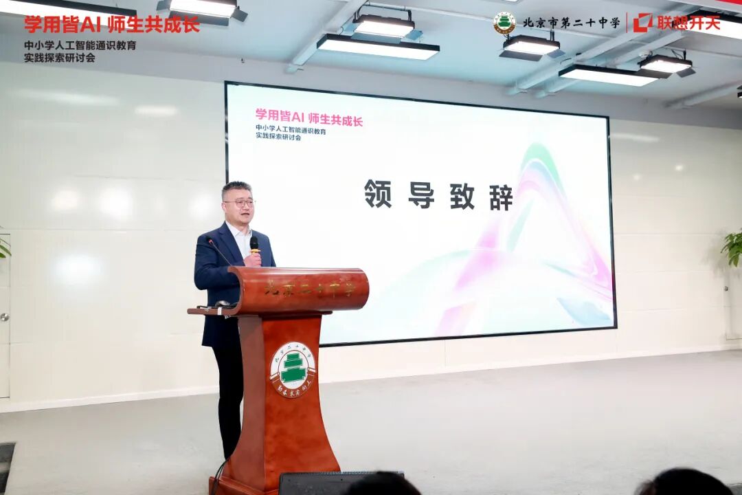 北京市第二十中学教育集团校长董红军在致辞中表示,希望与各位教育同仁携手,借助联想开天智能通识课解决方案,扎实推动人工智能教育,让智能思维成为学生成长的“底层能力”,让技术创新服务于学生的全面发展。