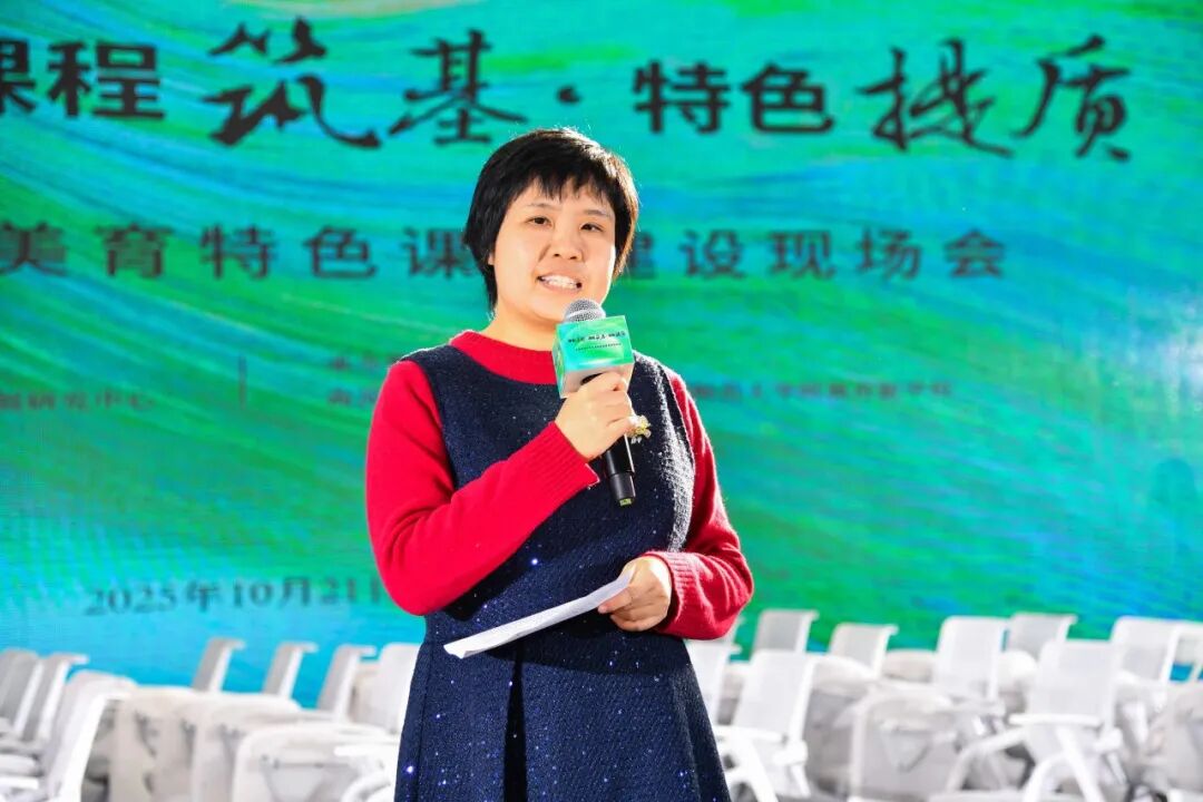 海淀区教育科学研究院院长吴颖惠为大会致辞,她指出,美育是温润心灵、涵养情怀、激发创造的基础工程,关乎孩子的全面发展,更关乎民族的精神底色。本次现场会首次在海淀举办,既是对区域美育工作的肯定,更是一份沉甸甸的责任。她详细阐述了海淀区构建的"三维并进"美育路径:以科研为引擎,强化专业引领;以课程为基石,推动全域融合;以文化为场域,实现环境浸润。她表示,海淀区将以此次会议为新起点,继续以"浸润"为目标,以"特色"为追求,以"提质"为方向,努力让每个孩子都能在高质量的美育滋养中,拥有更丰盈、更精彩的未来。