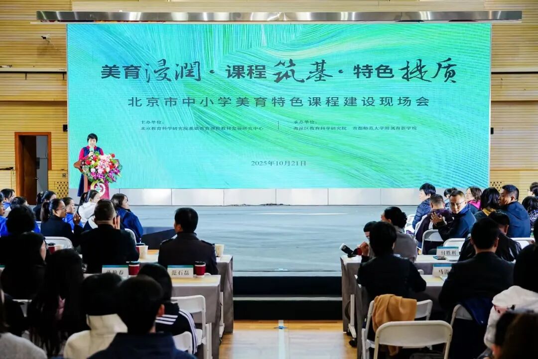10月21日,“美育浸润•课程筑基•特色提质——北京市中小学美育特色课程建设”现场会在首都师范大学附属育新学校举行。本次研讨会由北京教育科学研究院基础教育课程教材发展研究中心主办,海淀区教育科学研究院与首都师范大学附属育新学校共同承办。