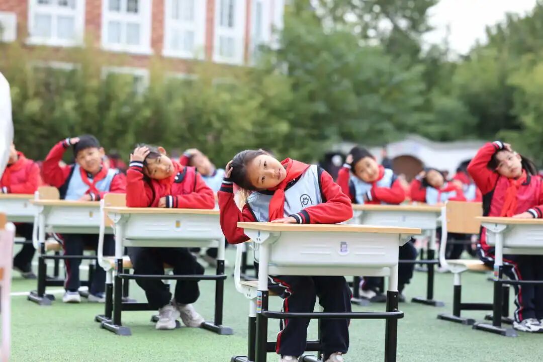 一年级以充满童趣的站立韵律操和“叠叠乐”比赛开启运动初体验,学生们在欢笑中锻炼了手眼协调能力。二年级通过肩颈放松操和“眼疾手快”比赛,展现了学生们的专注与活力。三年级以站立拉伸操激活身体,随后的“平板支撑”比赛考验了大家的耐力与坚持。四年级的水杯力量操和“金鸡独立”比赛,创意十足,锻炼了大家的平衡感与手臂力量。五年级的坐姿韵律操和“课间‘球’联动”比赛,展现了大家的从容与默契。六年级的桌椅放松操和“腕”美对决,则是一场力量与技巧的双重比拼。