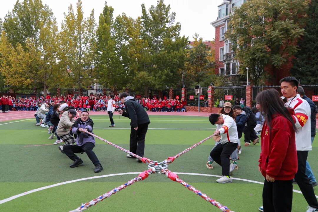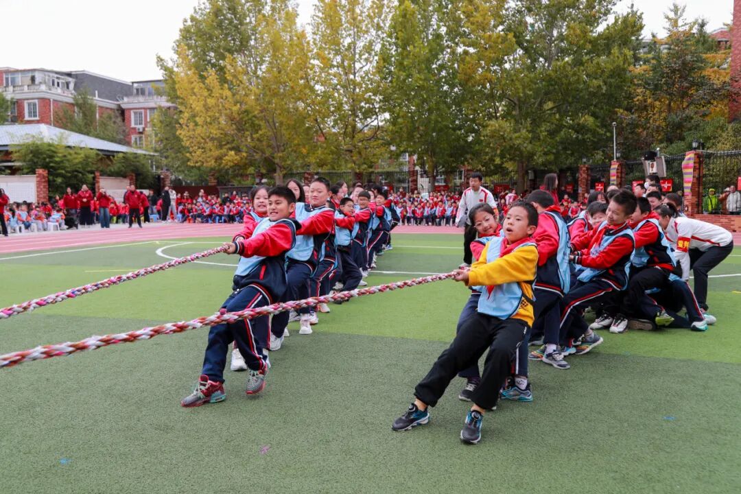 五年级“非常准”飞盘赛中,红队与蓝队全力以赴,在竞技中提高自我。六年级“十字拔河”大比拼里,同学们身体后倾、紧握绳索,展现出了团结协作、不屈不挠的体育精神和班级的凝聚力。