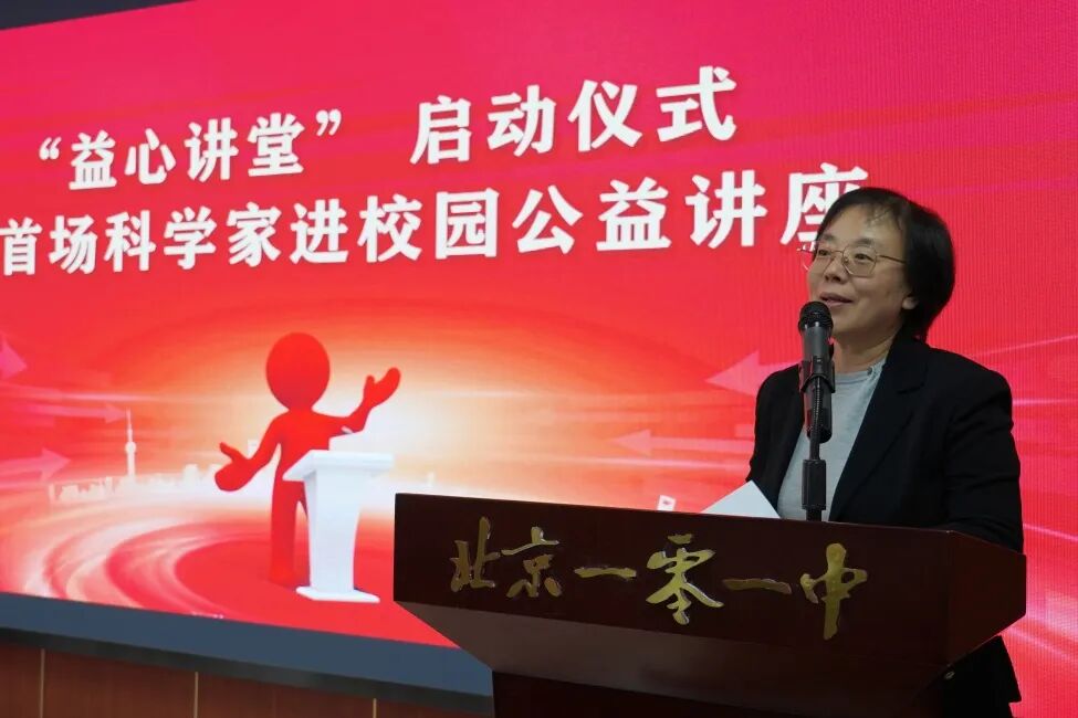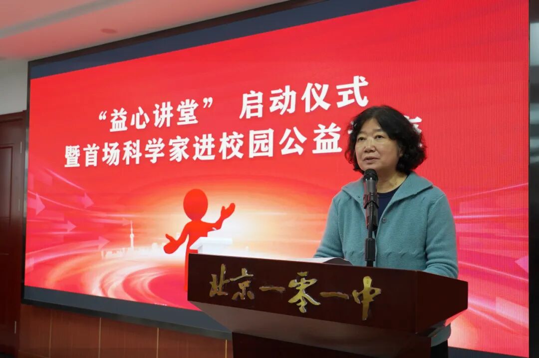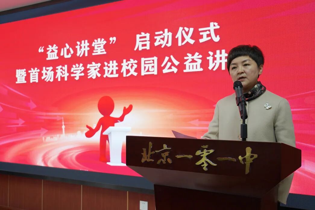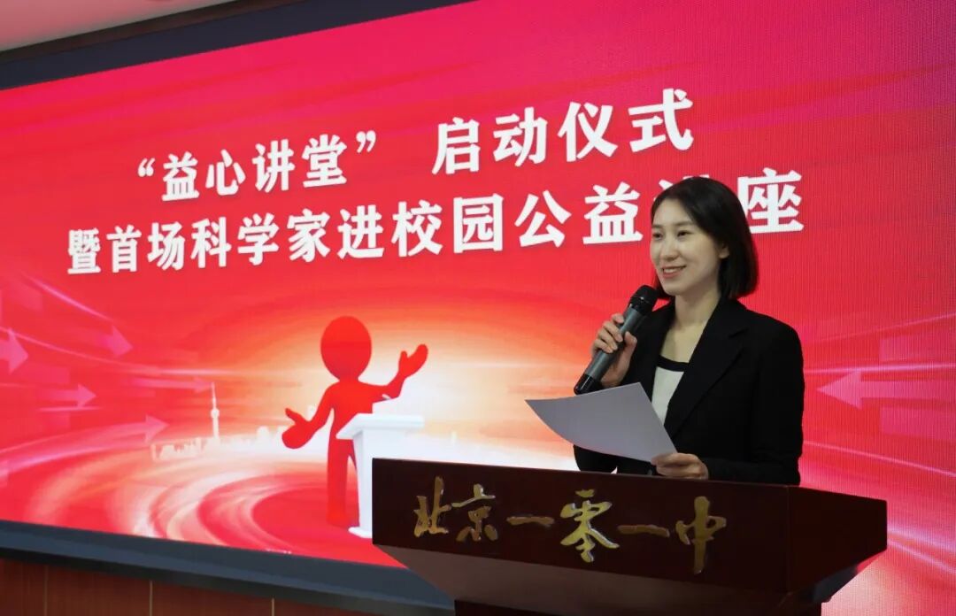 10月23日下午,由北京市海淀教育基金会发起的“益心讲堂”启动仪式暨首场科学家进校园公益讲座在北京一零一中双榆树校区举行。仪式由北京市海淀教育基金会副秘书长王媛主持。