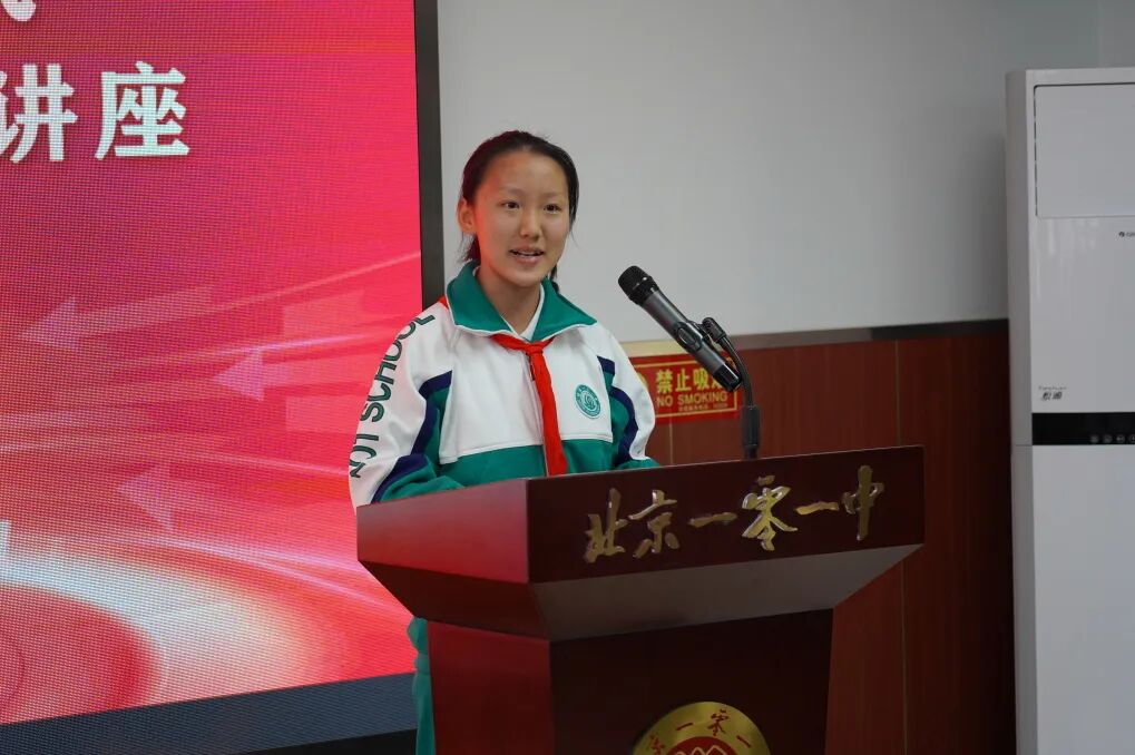 学生代表王若溪表达了同学们对“益心讲堂”的期待。她说道:“我们期待在这里收获知识,传递善意,也期待未来有更多科学家走进校园,为我们解开科学的奥秘和精彩。未来,我们要以公益使者为榜样,心怀天下、关注社会问题,用自己的所学所长为社会做出贡献。”