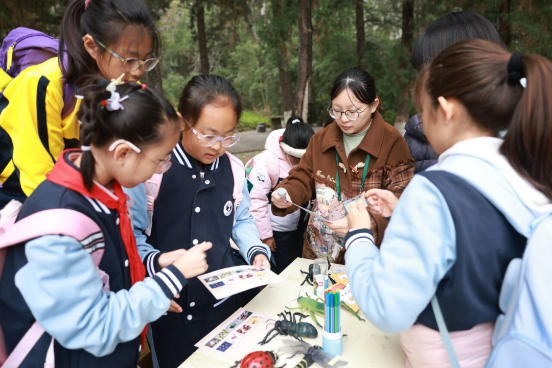 昆虫科普环节,指导老师带领大家深入林下,通过放大镜观察昆虫习性、记录物种特征,引导孩子们以科学视角探索生物多样性,培养严谨的探究精神与对自然的敬畏之心。