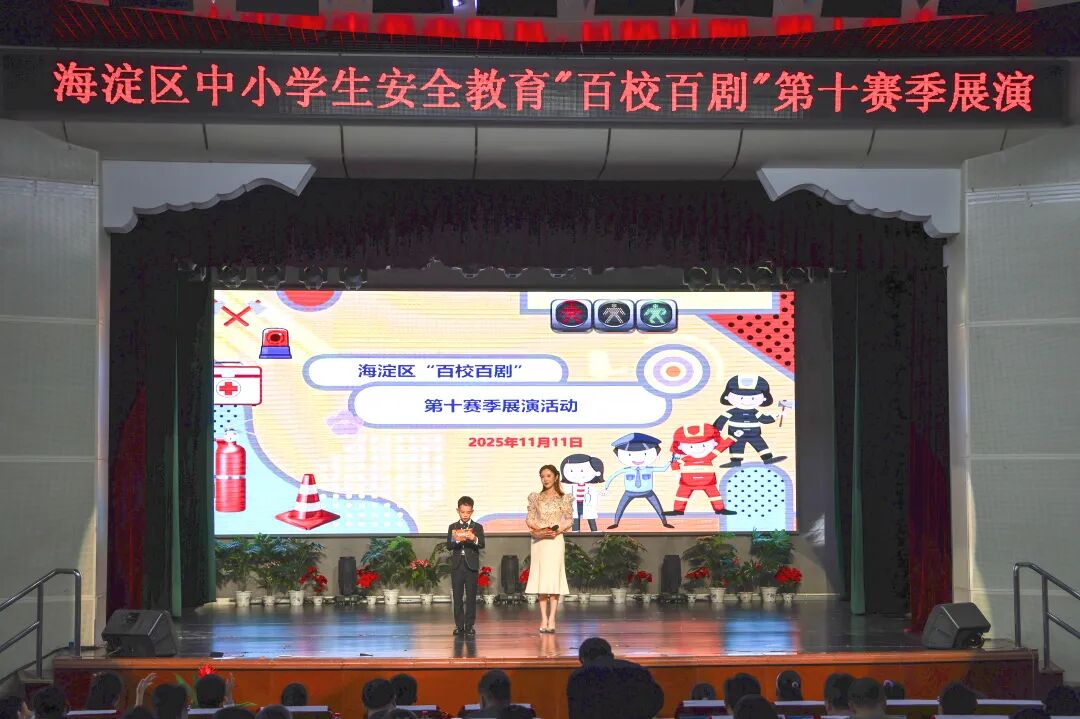 11月11日,海淀区中小学生安全教育 “百校百剧” 第十赛季展演在北京实验学校(海淀)举行。来自教育部、北京市应急管理局、北京市教委、海淀区教委的领导,以及人工智能等相关领域的专家学者亲临现场,与参演师生共同走进安全知识与AI艺术融合的精彩展演中。