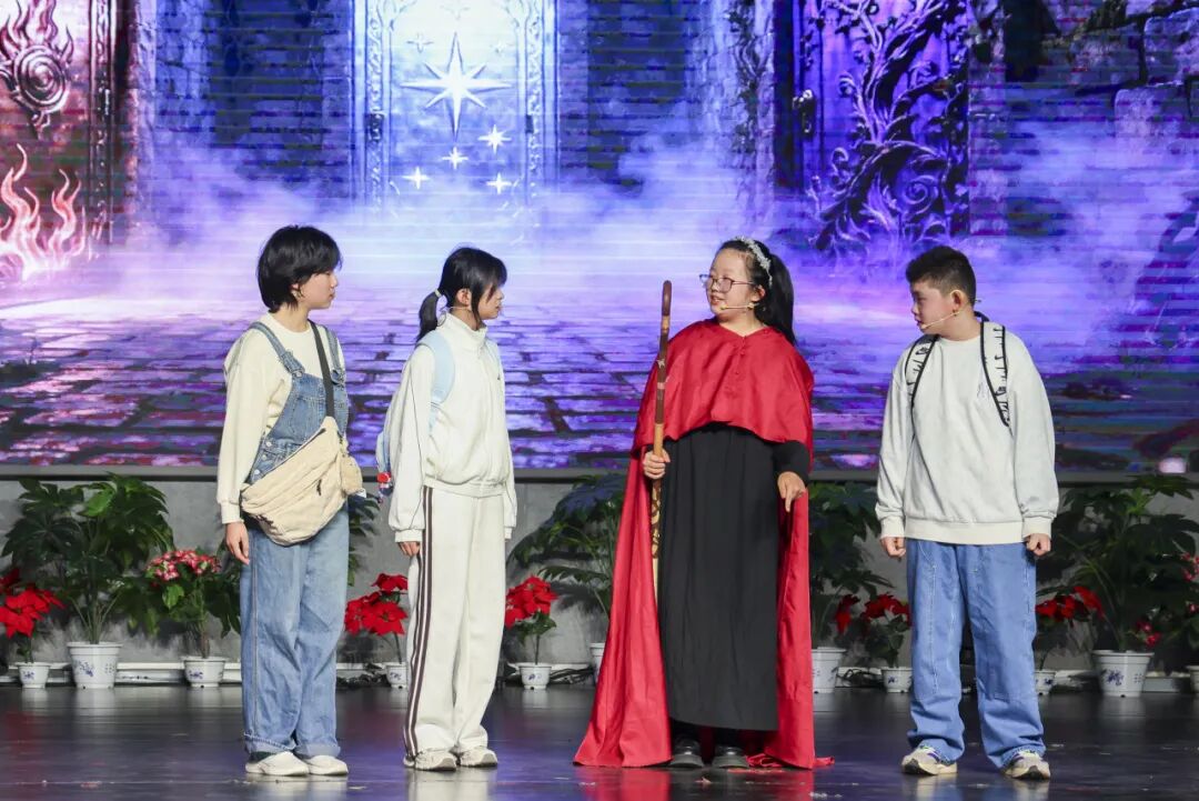 活动中,我们通过学生喜闻乐见的戏剧形式传播安全知识、深化安全意识,让学生把安全教育内化为必备的品格。为了更好表现主题,我们请教了植物专家、医学专家、戏剧专家,让知识传播不仅精准还兼具审美特点。在创新方面,我们这次是采用了中英双语展示,一支队伍两场演出,孩子们实现了主角配角互换,更好地锻炼了语言和表演能力。我们的宣传海报也是孩子们自己设计的,这个过程中我们也打破学科壁垒,助力孩子们综合素养的提升。另外,我们在表演中也加入了很多AI场景创设,让观众可以身临其境地走进戏剧创设的场情景中去体验和观看。