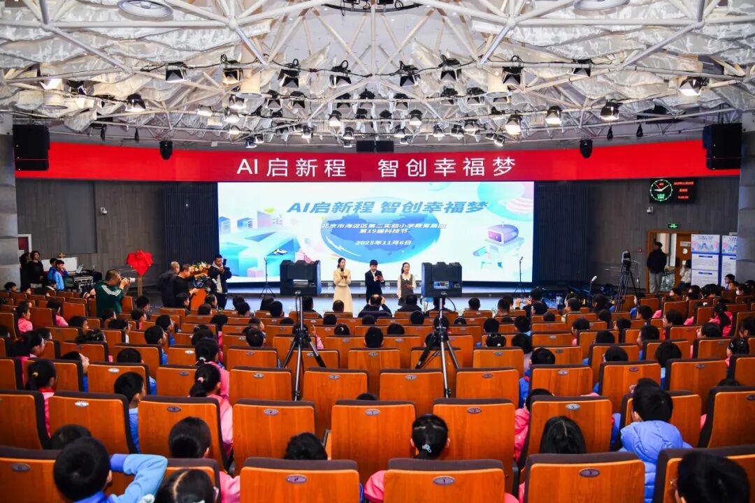 11月6日,北京市海淀区第二实验小学教育集团第19届校园科技节“AI启新程,智创幸福梦”正式启幕。开幕式上,学校为在市级科技竞赛中斩获一等奖和金奖的学子颁奖。一份份奖状,是肯定,更是点燃下一段探索旅程的火种。“新华书店科学教育示范基地”的落成,引得大家激动不已。该基地的落成,标志着学校的科技教育拥有了更广阔的社会化平台与资源支持,孩子们的科技梦将飞得更高、更远。