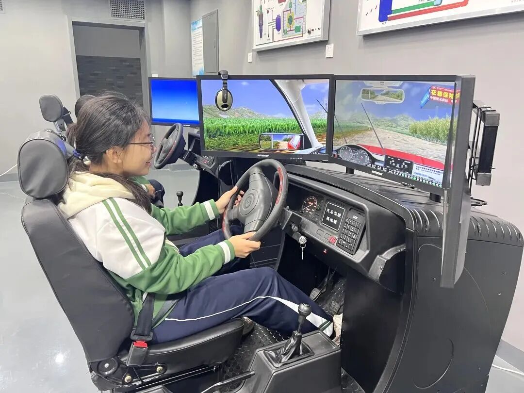 除了动态体育之外,学校还为同学们准备了科技感十足的汽车模拟驾驶项目,使其体验身临其境的驾驶体验。