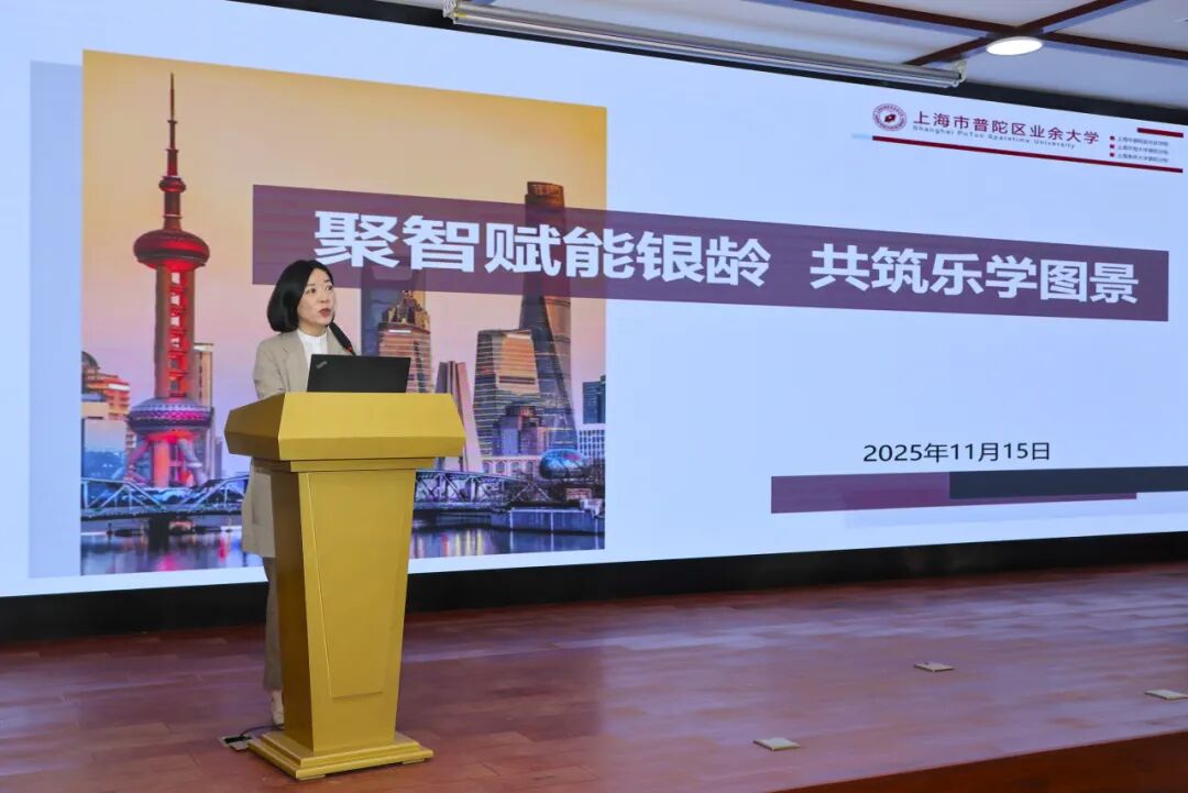 上海普陀区业余大学副校长周雪梅以“聚智赋能银龄,共筑乐学图景”为题,分享学校以人文关怀为核心,借助现代科技拓展学习场景、丰富教学资源,将老年健康教育作为重点,构建开放包容的终身学习生态,推动老年教育高质量发展,激发银龄群体社会创造潜力的经验。