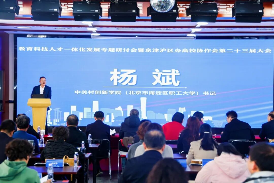 为深入学习宣传贯彻党的二十届四中全会精神,全面落实全国教育大会精神,11月14日至16日,教育科技人才一体化发展专题研讨会暨京津沪区办高校协作会第二十三届大会在北京中关村创新学院(北京市海淀区职工大学)举行。天津市教委继续教育处处长王勤,上海市教委高教处副处长孙勇,北京市教委高教处副处长王鑫、陈雷,北京市海淀区教委副主任唐建东以及三地21所成人高校的代表参加会议。中关村创新学院(北京市海淀区职工大学)院长程洪莉主持会议。