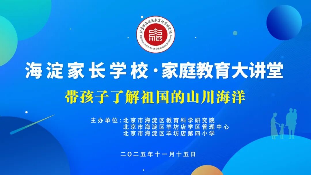 11月15日,海淀教科院、羊坊店学区、羊坊店第四小学联合举办“海淀家长学校•家庭教育大讲堂”第108讲《带孩子了解祖国的山川海洋》。