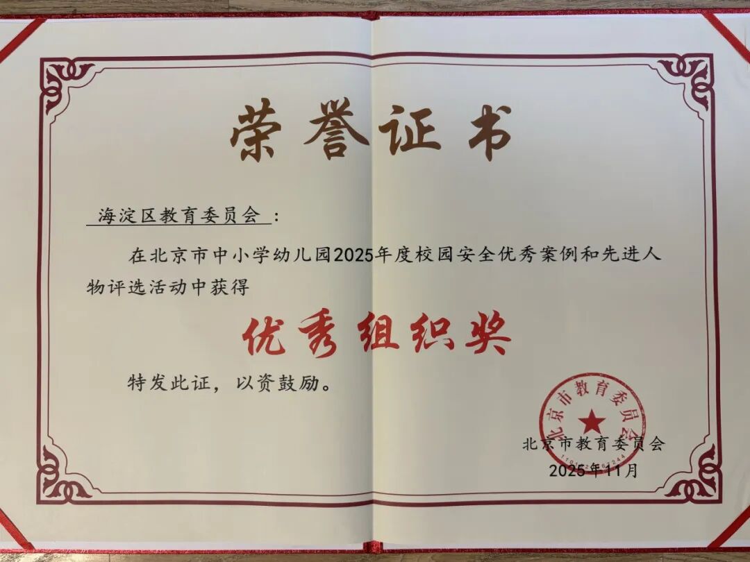 北京市教委今年启动了第二届校园安全优秀案例征集活动,经单位推荐、区级选拔、专家评议等环节,最终共评选出校园安全优秀案例一等奖10个、二等奖21个、三等奖36个、优秀奖41个、优秀组织奖10个,此次海淀区共选送10个案例参与评选,海淀区教委指导各学校完善责任体系,探索数智赋能,塑造安全文化,形成了一系列校园安全案例,最终取得1个一等奖,1个二等奖,3个三等奖和4个优秀奖