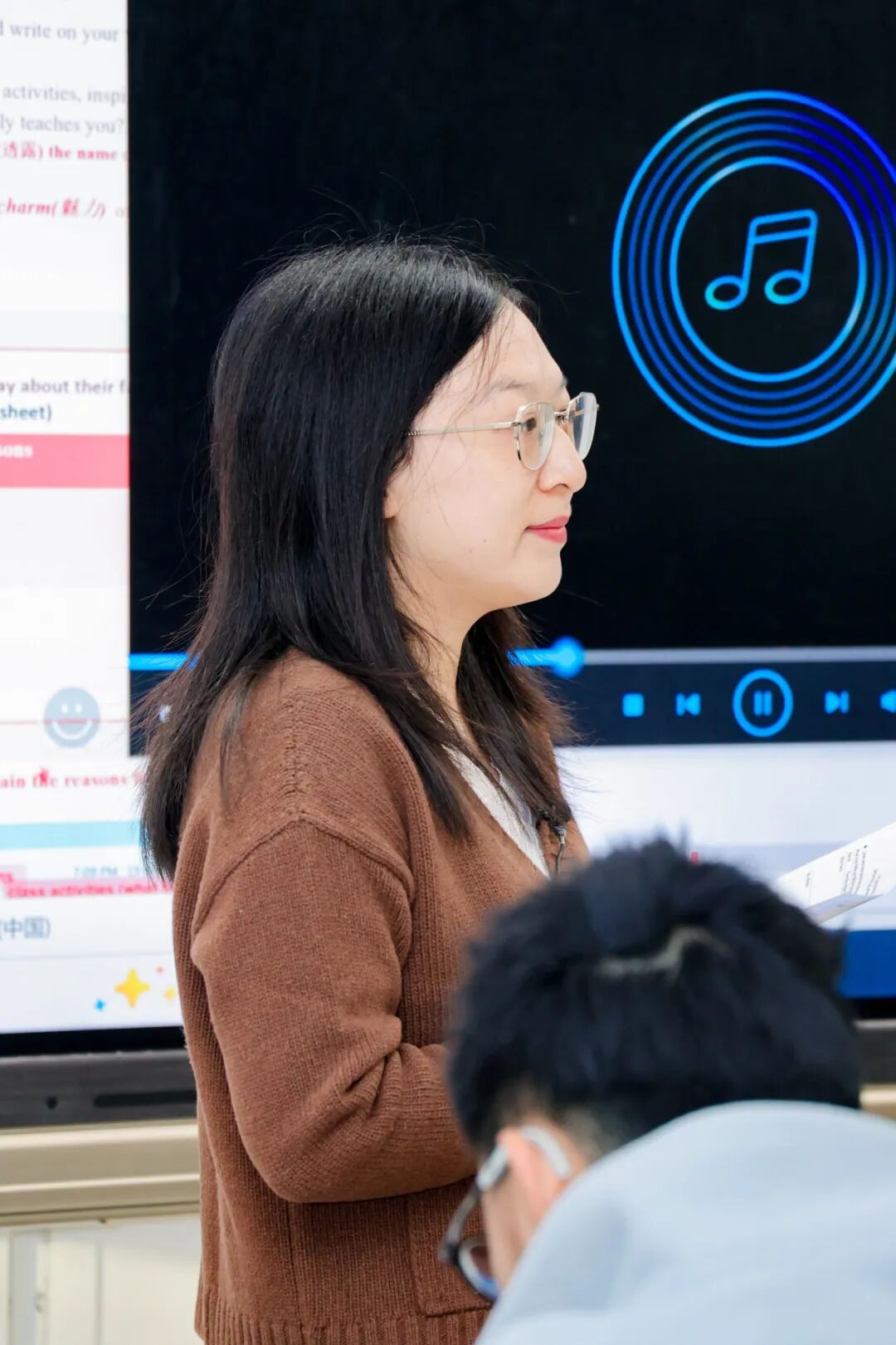 直升初一年级田甜老师在课堂上创设“心声墙”真实语境,推动学以致用。