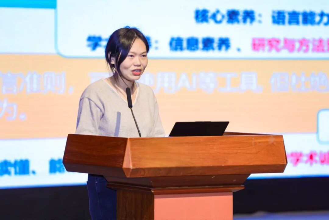 十一学校多语言学科主任刘婕以《多语课程助力学生多元发展》为题,介绍了学校涵盖法、德、西、日等8门小语种的特色课程群,并通过课内融合AI技术创设真实情境,课外搭建多语风采大赛、IOAI国际赛事志愿服务等多元平台,有效提升了学生的语言能力、跨文化交际素养与国际视野。