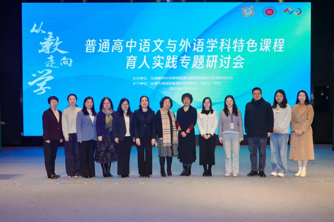 11月27日,北京教科院课程中心、海淀教科院与北京市十一学校联合举办“从教走向学:普通高中语文与外语学科特色课程育人实践”专题研讨会。这是北京教科院课程中心自2024年以来主办的第七场,也是海淀教科院承办的第二场学科类专题研讨会,旨在深化特色课程建设,推动“从教到学”落地实施。