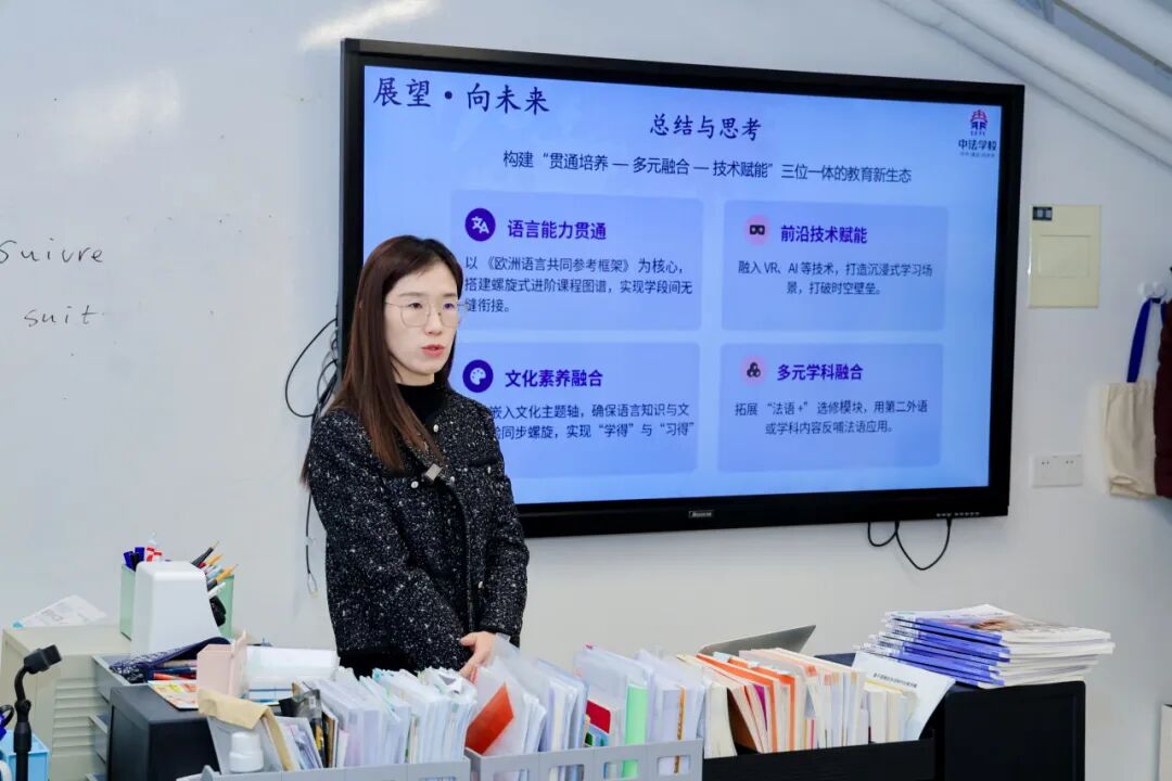 中法实验学校法语学科组组长李佳以《筑基创新育“梧桐” 特色引领满庭芳》为题,阐述了中法实验学校“十二年一贯法语课程体系”的实践探索。