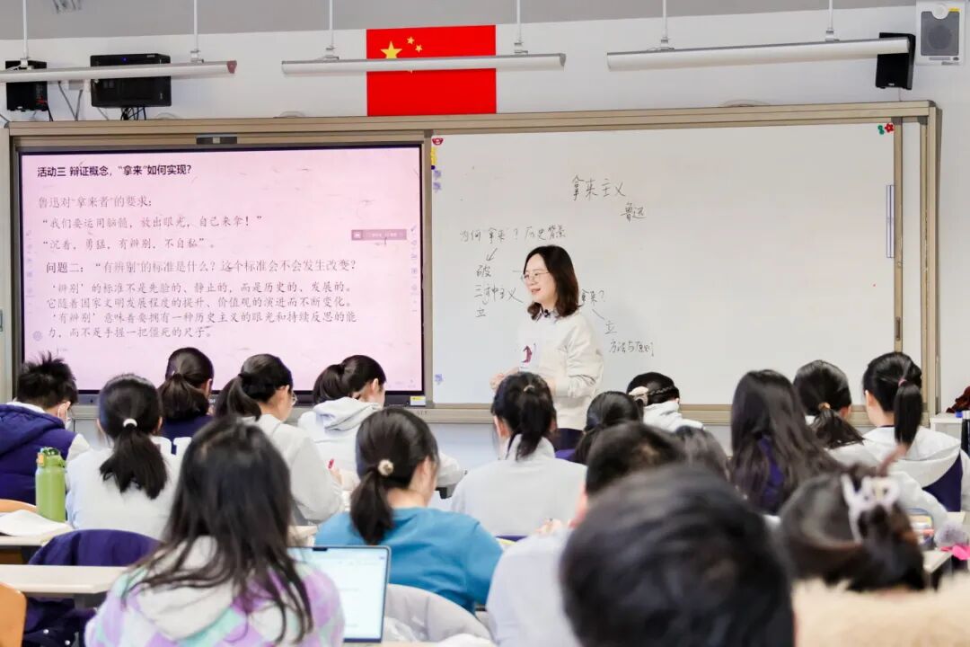 高二年级赵楠老师的《<社会历史的决定性基础>的论证逻辑》,创设“青年瓦尔特转述回信”真实情境,通过小组协作驱动学生解析理论文章的论证逻辑,提升自主研读与表达能力。