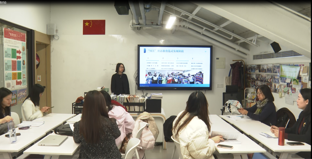 北外附校课程办主任史芳以《自我导向·情感融入·赋能探索》为题,系统介绍了学校“SEE”一体化课程育人体系,并着重分享了“SEE”外语教育范式从课堂到育人新境的扎根实践。