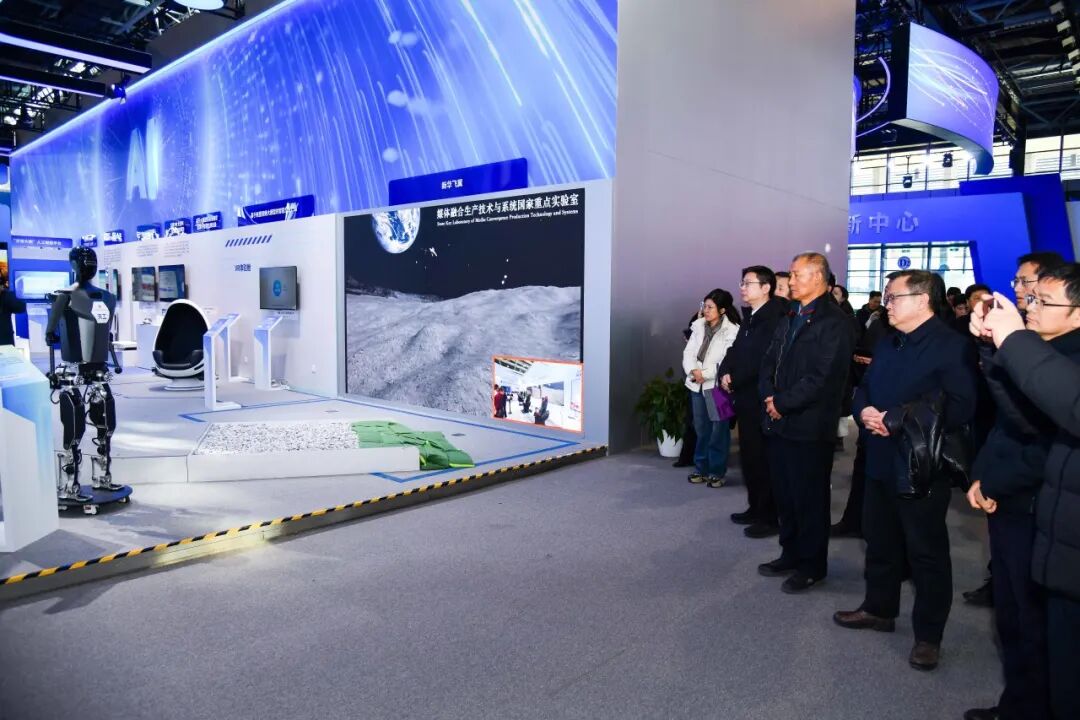 与会代表首先参观了展示中心内新一代信息技术、人工智能、量子信息等领域的尖端科技成果。