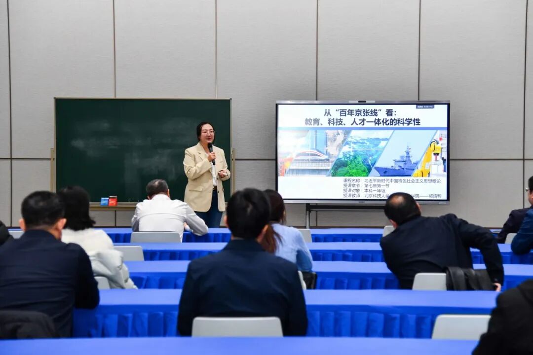 北京科技大学马克思主义学院教师郝婧智从“教育、科技、人才一体化的科学性”角度进行讲解。这一安排巧妙地将国情教育、形势政策教育与科学精神、爱国情怀培养融为一体,展现了思政课实践教学的强大生命力。