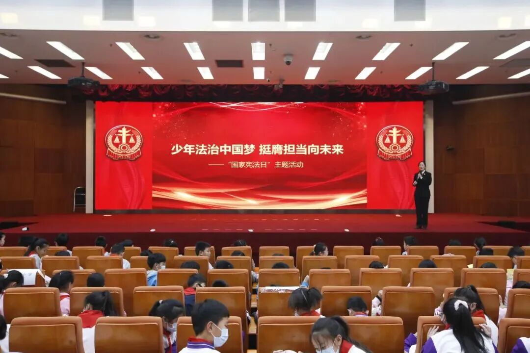 12月3日,来自海淀学区200余名师生齐聚中关村大法庭,举行“少年法治中国梦 挺膺担当向未来”普法宣传大思政课,这是海淀学区携手校外教育基地海淀法院少年法庭举办的第九届宪法周主题教育活动。