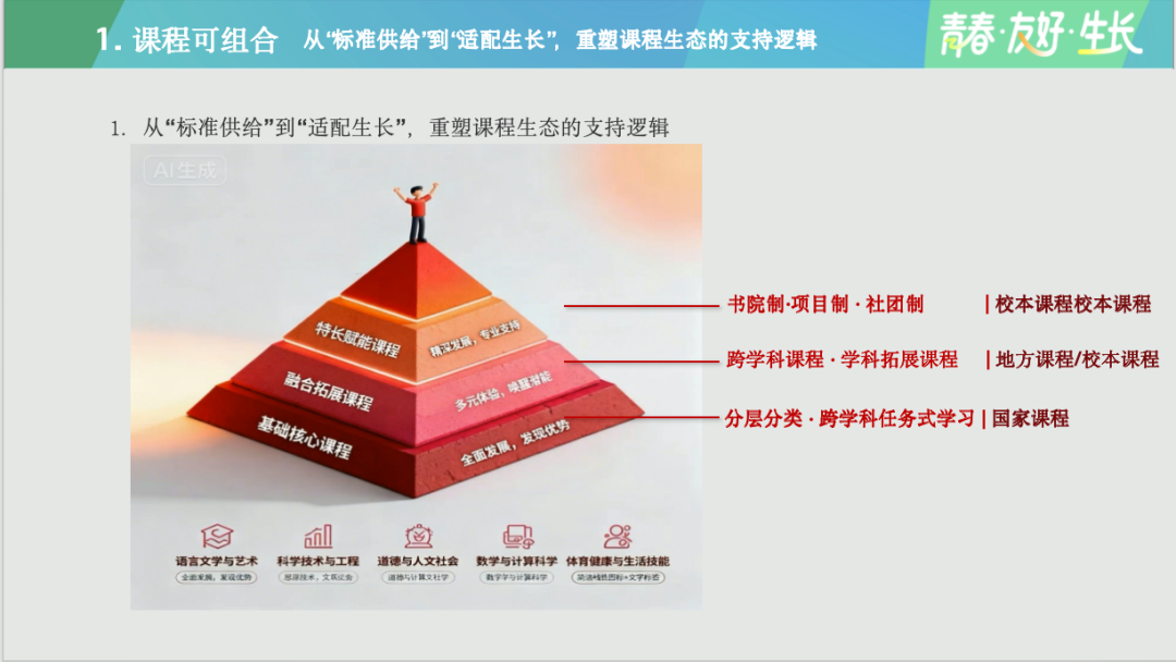 未来,学校将优化课程生态,从“一人一课表”升级为“一人一学习世界”,实现“世界是课堂”的无边界学习,让每个青春在生命友好的生态中绽放光彩,为培养新时代国家栋梁贡献力量。