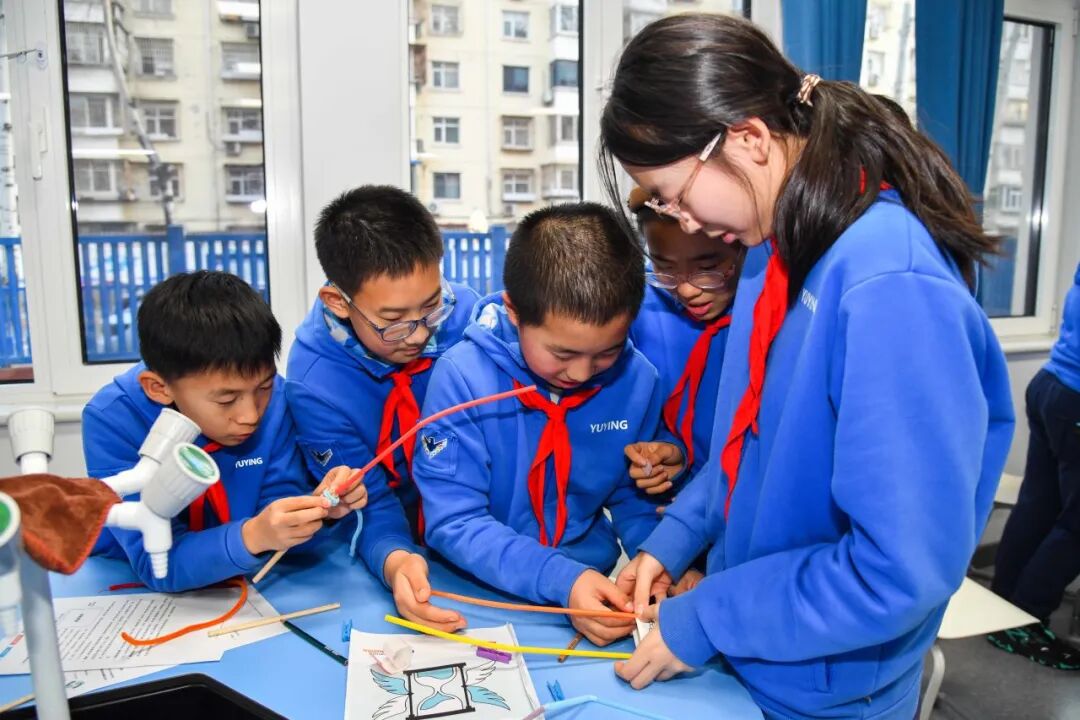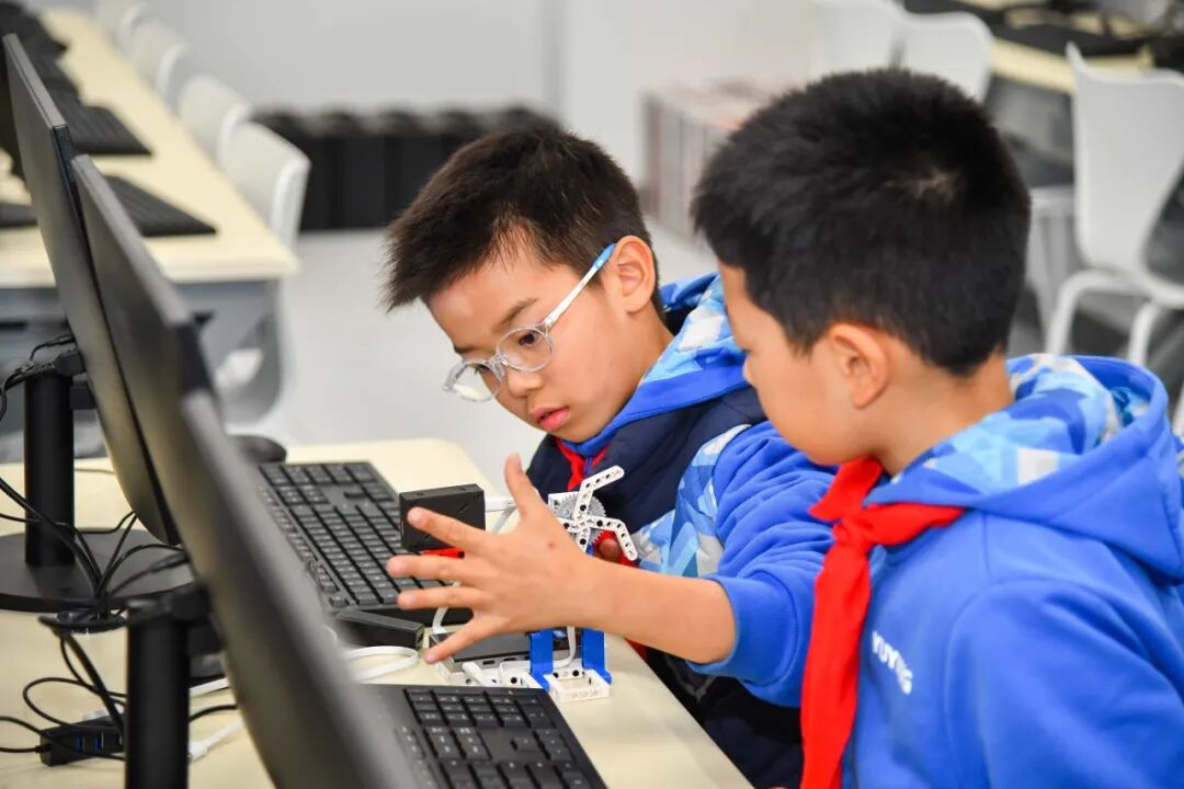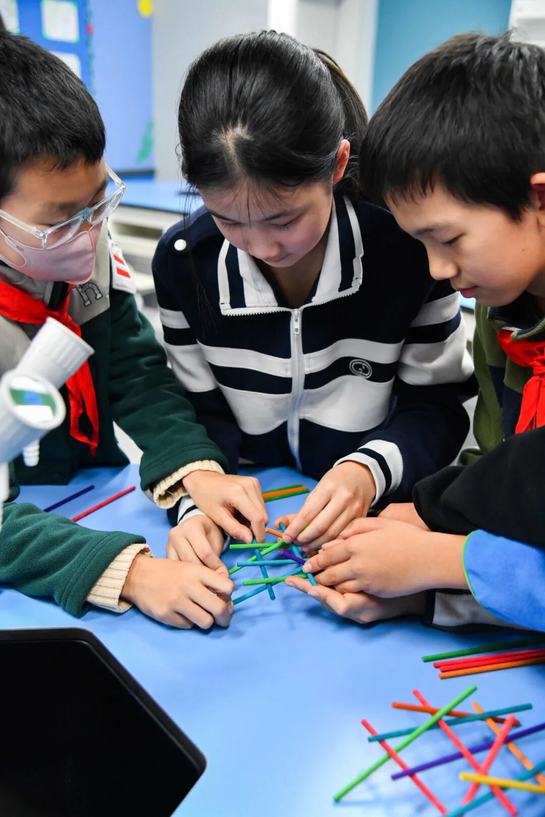 在科学教室,育鹰小学课程中心副主任蒋振东展示了一个超越传统的“创客空间”。这里呼应着新课标的核心素养,配备可升降学生电源,打造了线上“大脑博物馆”和机器人创造空间。学生们不仅能进行基础实验,还能与定制AI展开深度对话,更能在多次荣获世界机器人大赛冠军的社团中挥洒创意。人体工学设计的静音座椅、灵活的空间布局,共同支撑着学校“创造家课程”的实施,构建起“课堂实验室—校园实践场—社会大课堂”的三级实践体系。
