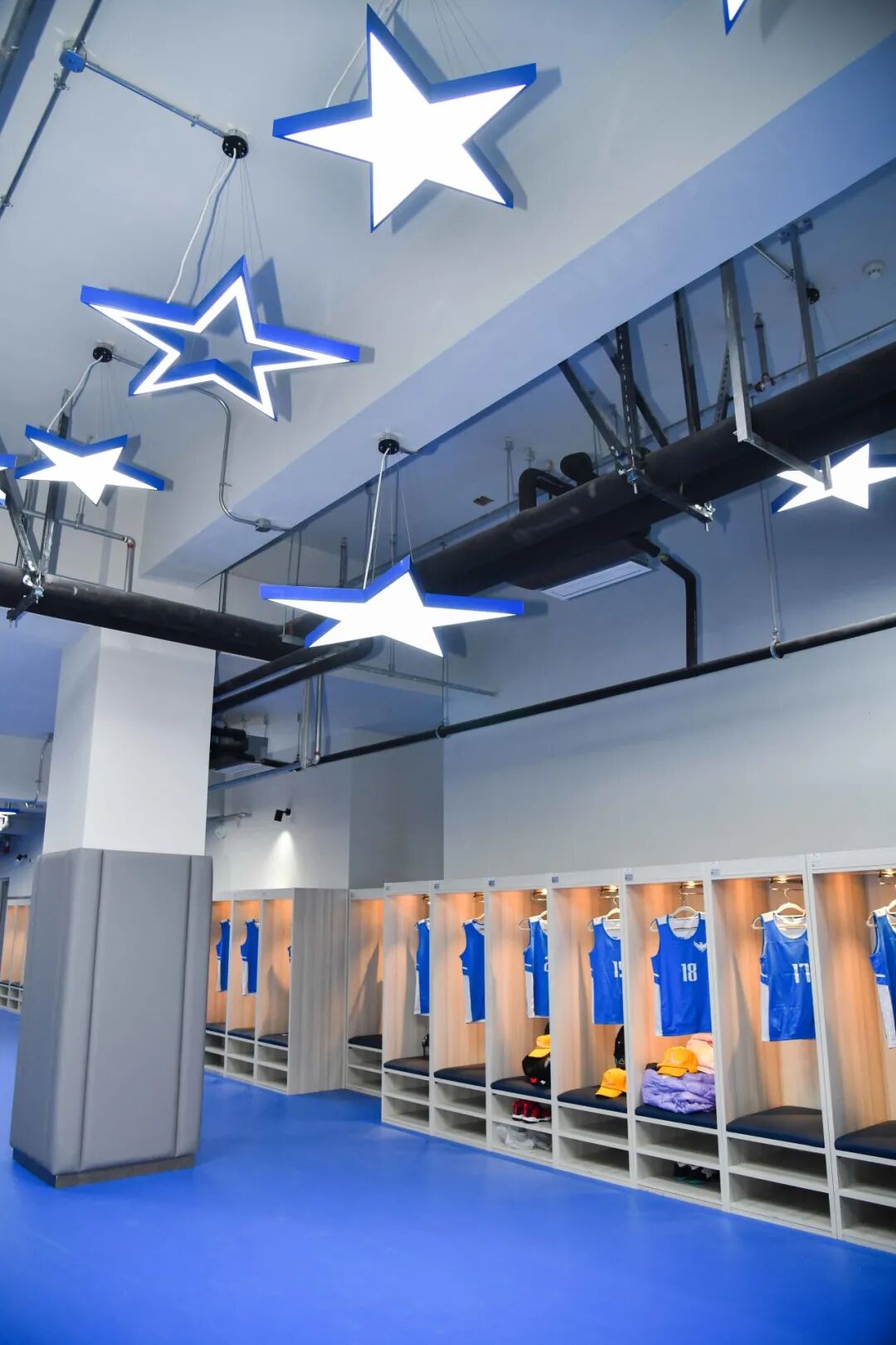 最令人惊叹的是地下一层的“风雨篮球馆”。胡云星老师介绍,这个800余平米的空间,配备专业运动地胶与木地板,以及强力新风系统保障空气清新。它不仅是篮球教学与社团训练的核心,更暗藏玄机——北侧场地装有可容纳460人的隐藏式伸缩座椅,一键切换为开学典礼、文艺汇演等大型活动的综合馆,真正实现了“一场多用”。