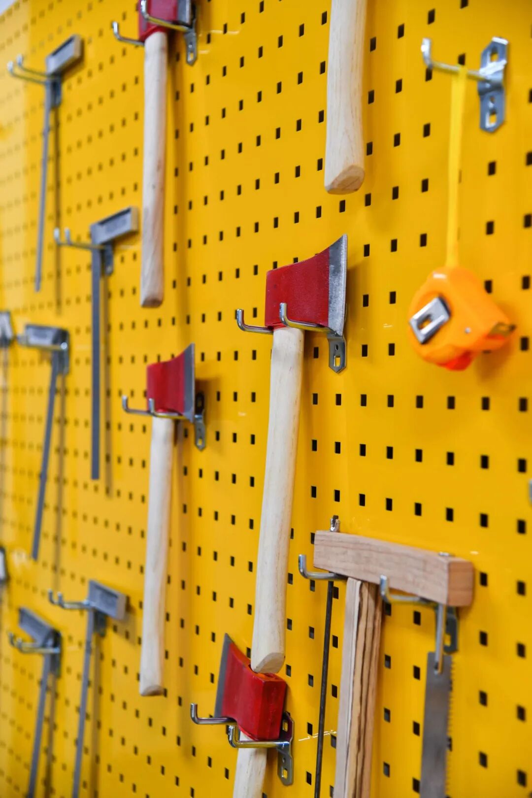 劳技教室宛如一个“工匠坊”,李忠萍老师介绍道,木工与金工工具墙上工具齐全,学生们在这里学习收纳木工、陶艺和简易电工,在安全有序中养成良好的劳动习惯。