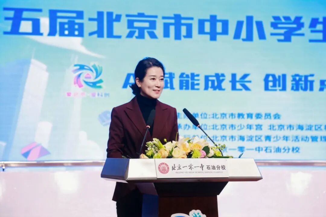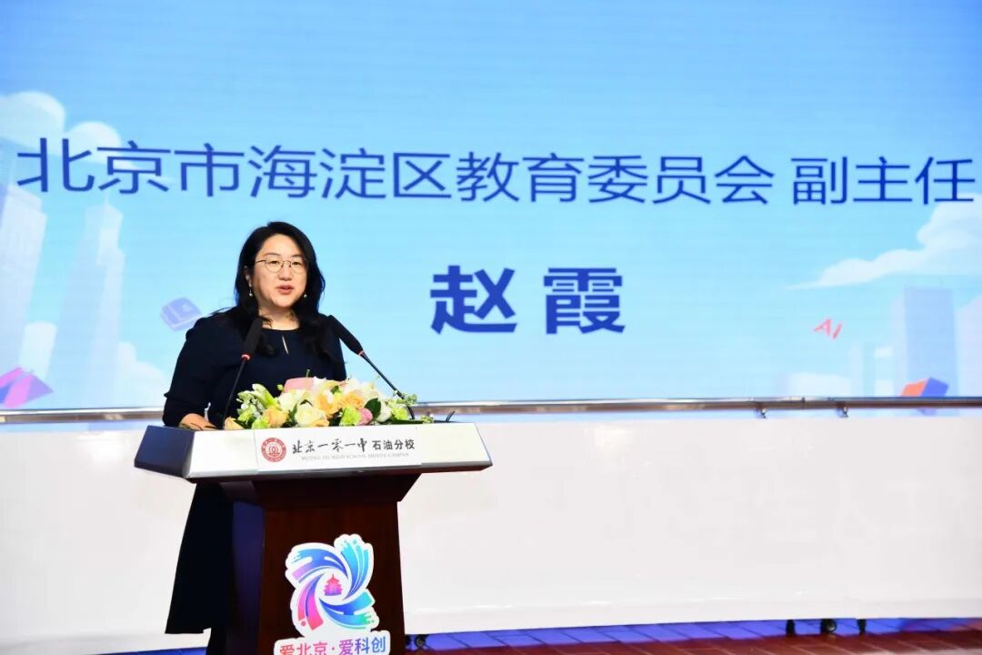 海淀区教委副主任赵霞立足“布局”与“生态”,系统阐释了海淀区作为教育高地,在推动人工智能教育普及化、体系化发展上的顶层设计,旨在打造全域协同的创新人才培养沃土。她希望同学们在赛场上绽放科创光芒,收获友谊与成长,预祝比赛圆满成功。