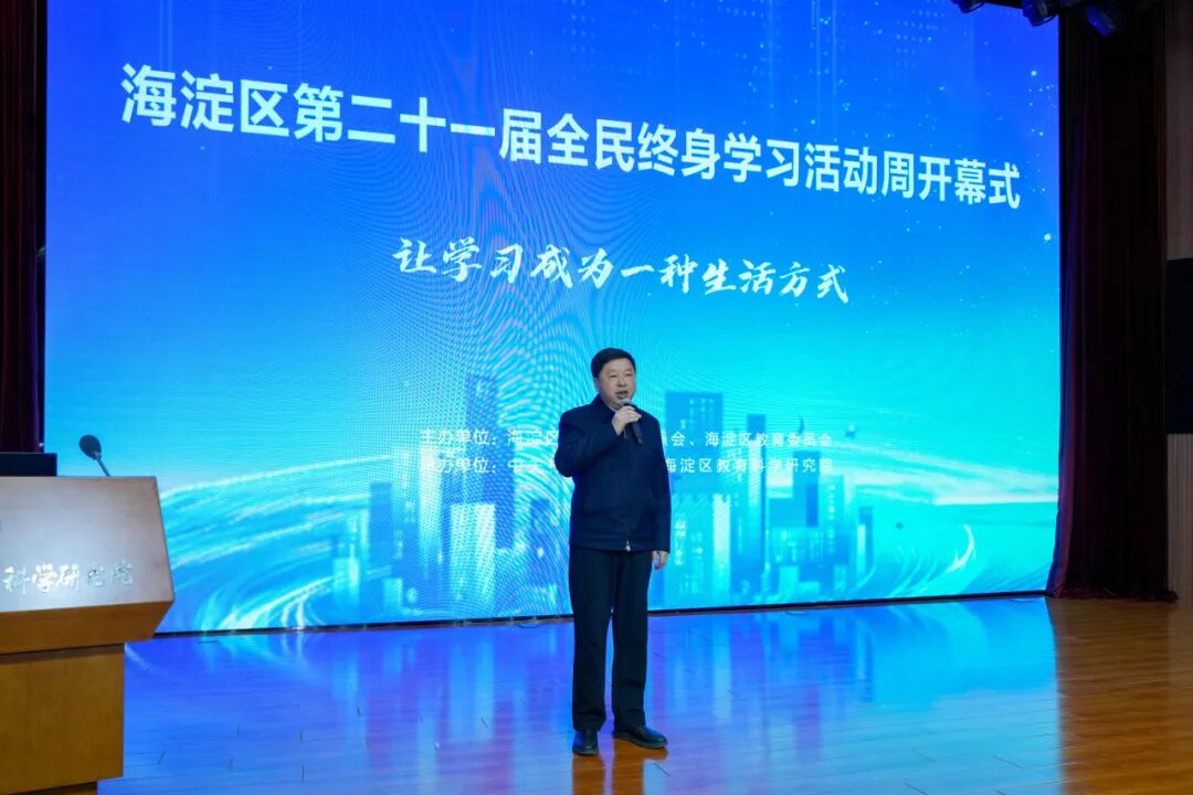 12月25日,由海淀区委教育工委、海淀区教委主办,中关村创新学院、海淀区教育科学研究院联合承办的海淀区第二十一届全民终身学习活动周开幕仪式在海淀区教育科学研究院举行。海淀区副区长武凯,海淀区委教工委书记、区教委主任杜荣贞,海淀区教委副主任唐建东,以及海淀区各委办局、街镇代表,各学区等相关领导共同参会。
