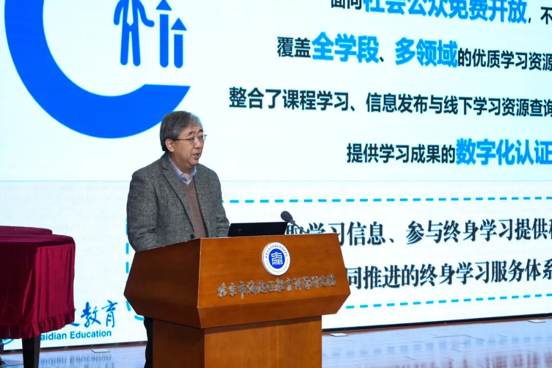 唐建东围绕“回望来路 夯实根基:构建全域终身学习系统”“聚焦当下 协同发力:开创终身学习实践新局面”“面向未来 提质增效:持续实现全方位自我超越”三个方面作海淀区2025年全民终身学习工作主旨报告,结合先进典型案例总结了一年来海淀区学习型城区建设的经验与成果。未来,海淀区教委将继续为区域市民提供优质学习机会,丰富文化资源供给,与社会各界并肩前行,在数字赋能学习方面进行升级,为北京国际科技创新中心核心区高水平建设注入海淀动能。